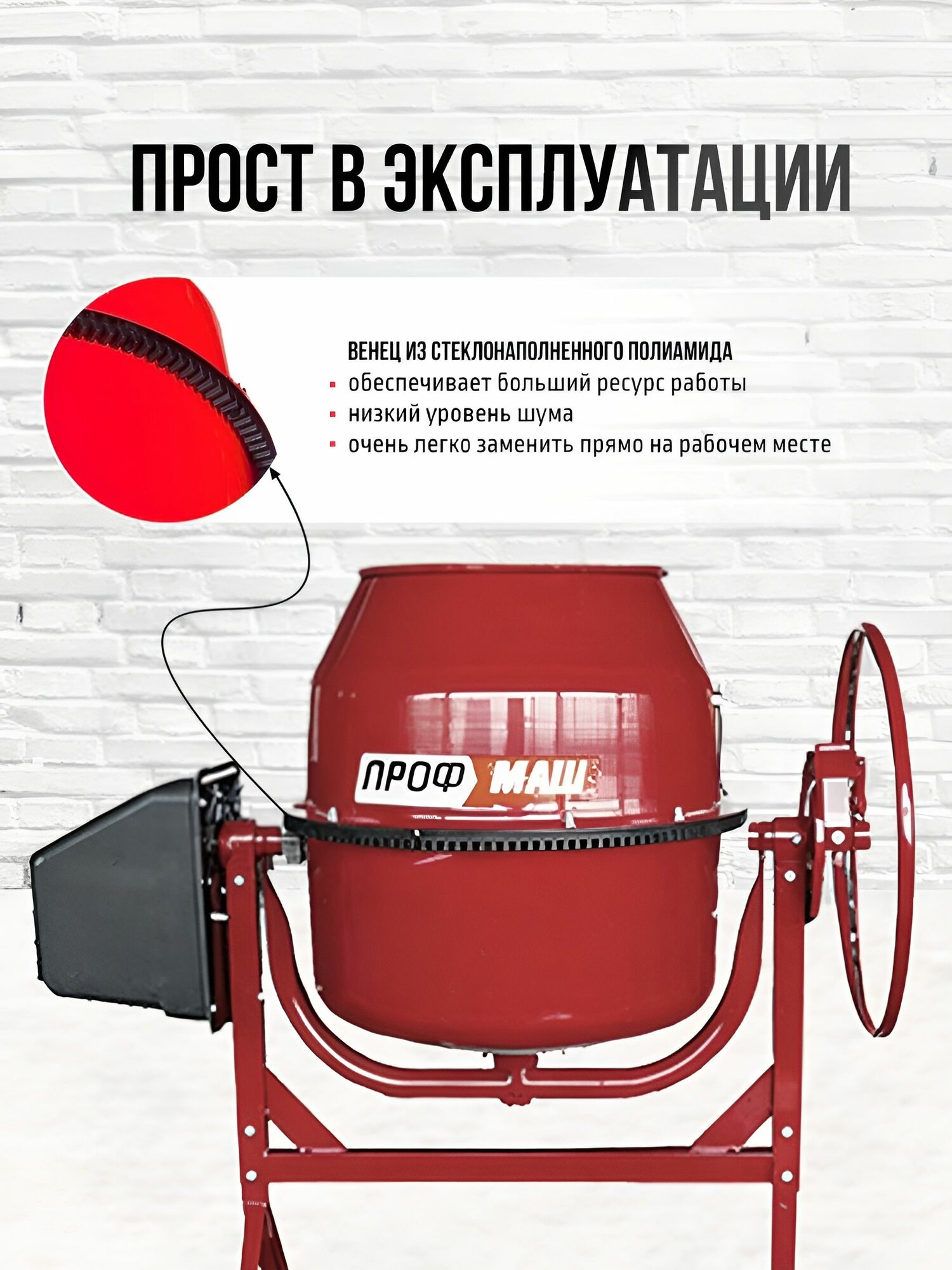 Бетономешалка строительная, бетоносмеситель профмаш Б-180 700 Вт, 180 л полиамидный венец