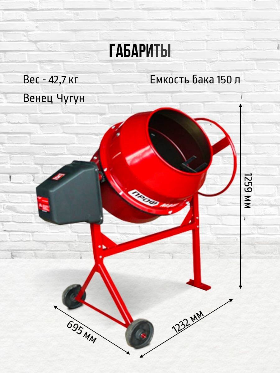 Бетономешалка строительная, бетоносмеситель профмаш Б-150 550 Вт, 150 л чугунный венец интересное: