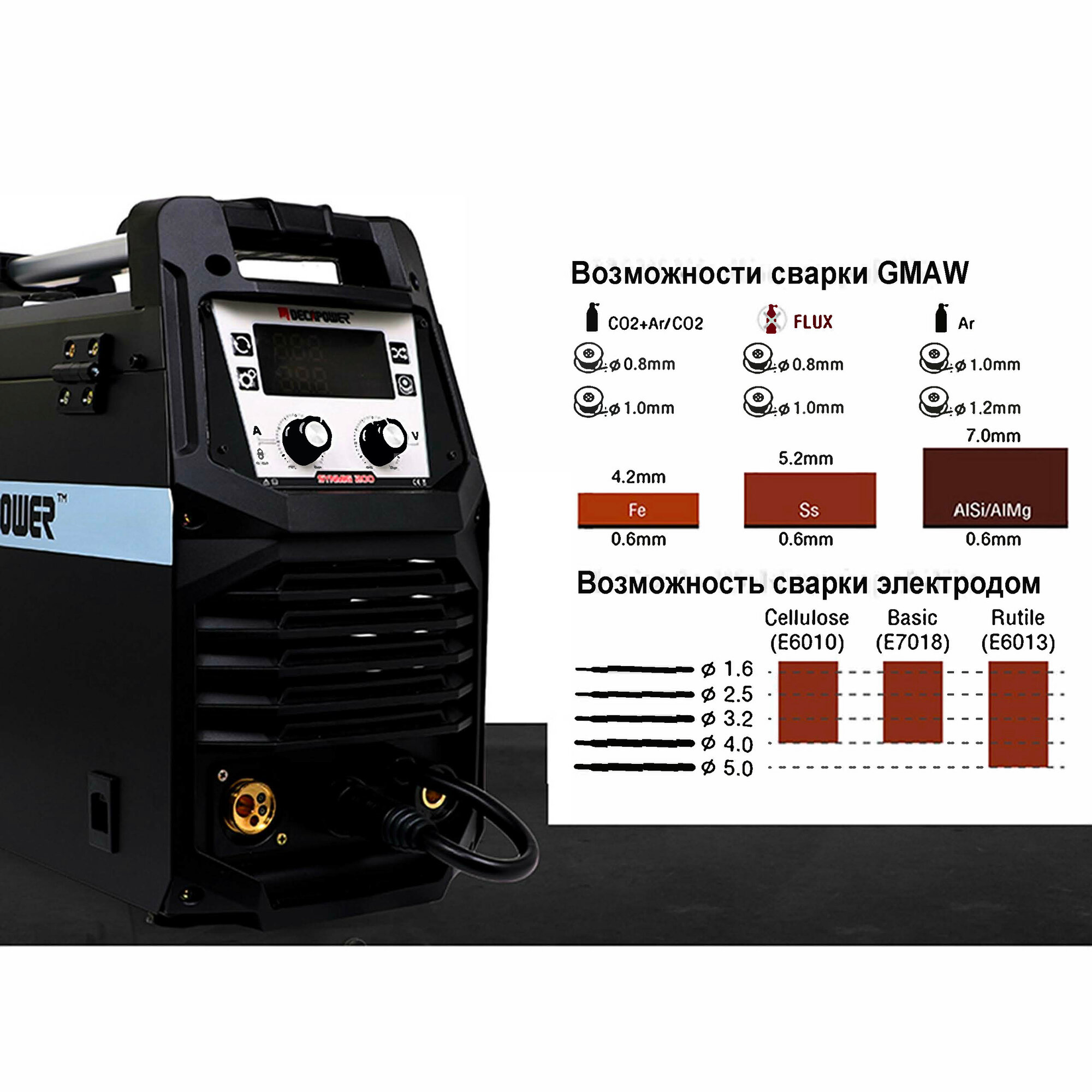 Сварочный полуавтомат DECAPOWER SYNMIG 200, с газом/без газа, 5в1 MIG /MAG/FLUX/ММА/LIFT TIG интересное: