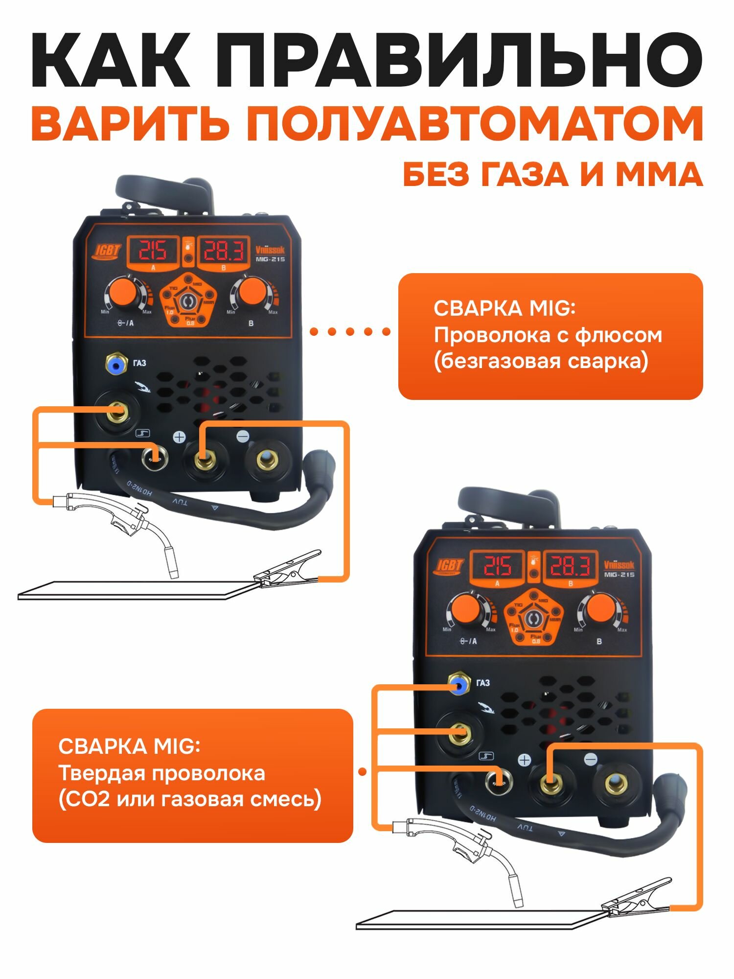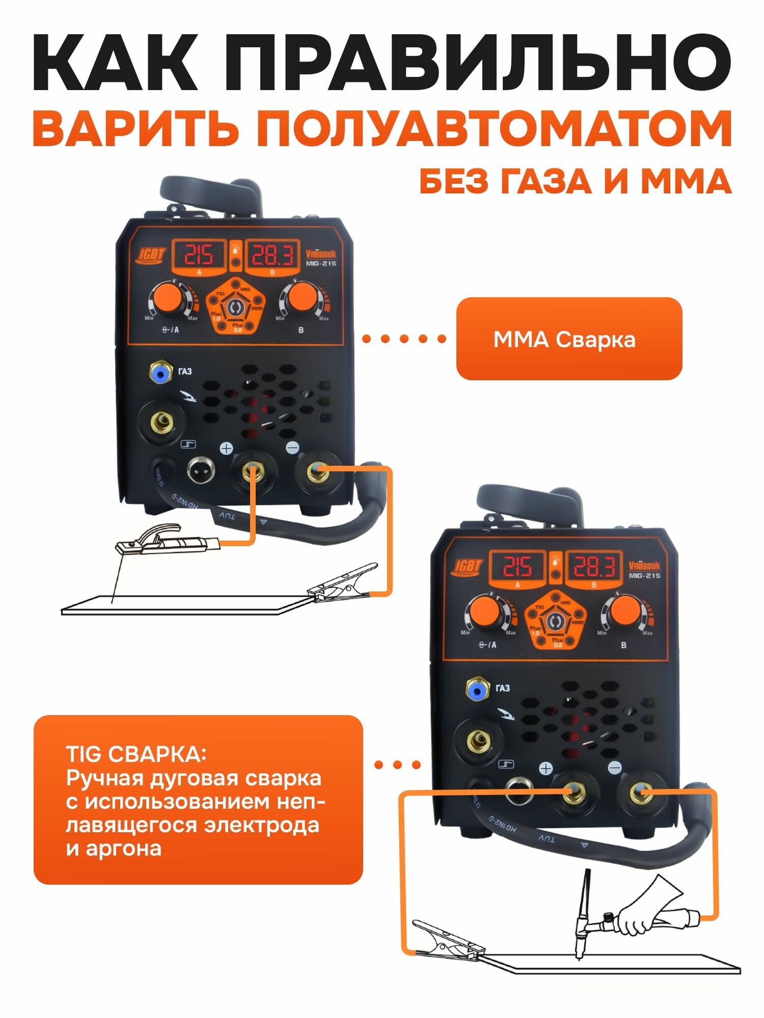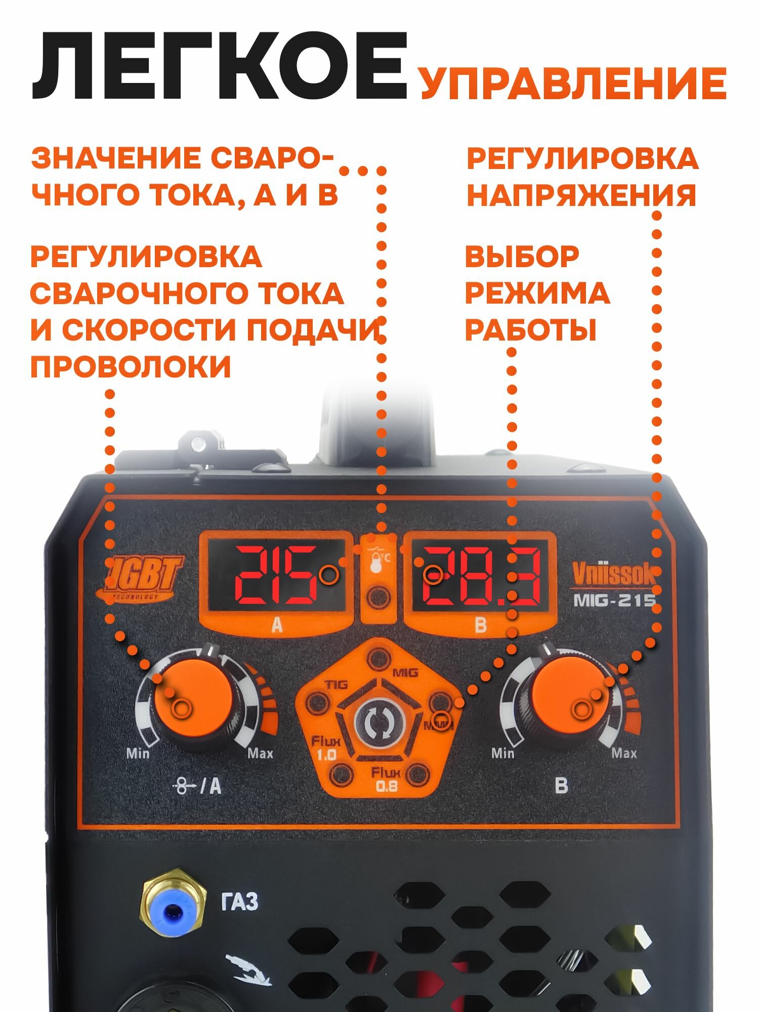 Сварочный полуавтомат с газом/без газа MIG-215 5 в 1 интересное: