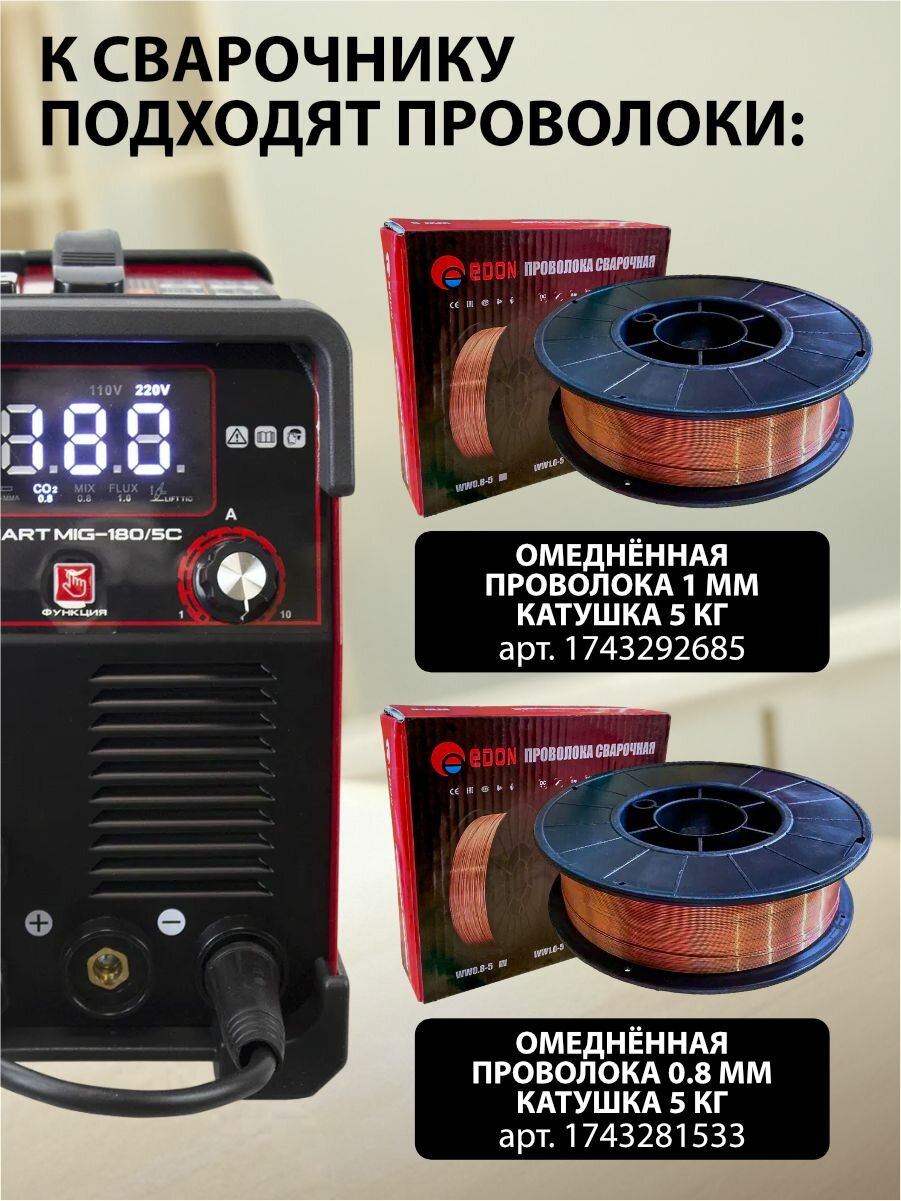 Сварочный полуавтомат Edon IR-25073, MIG/MAG, 4,74 кВт, 20-180 А интересное: