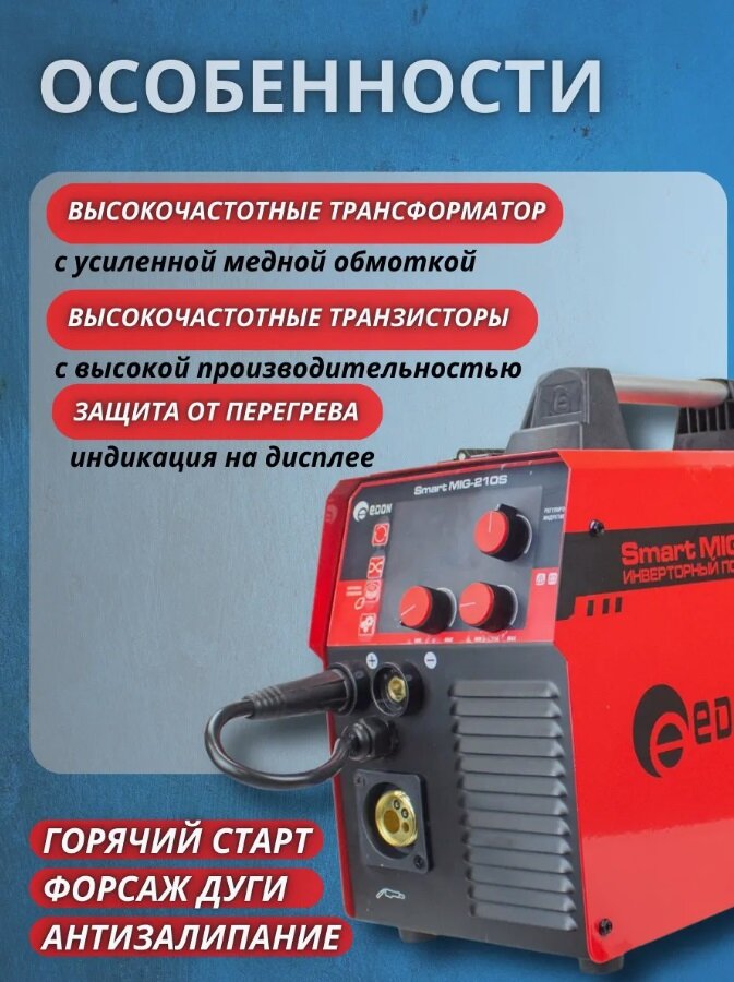Сварочный полуавтомат инверторный Edon Smart MIG-210S с газом и без газа интересное: