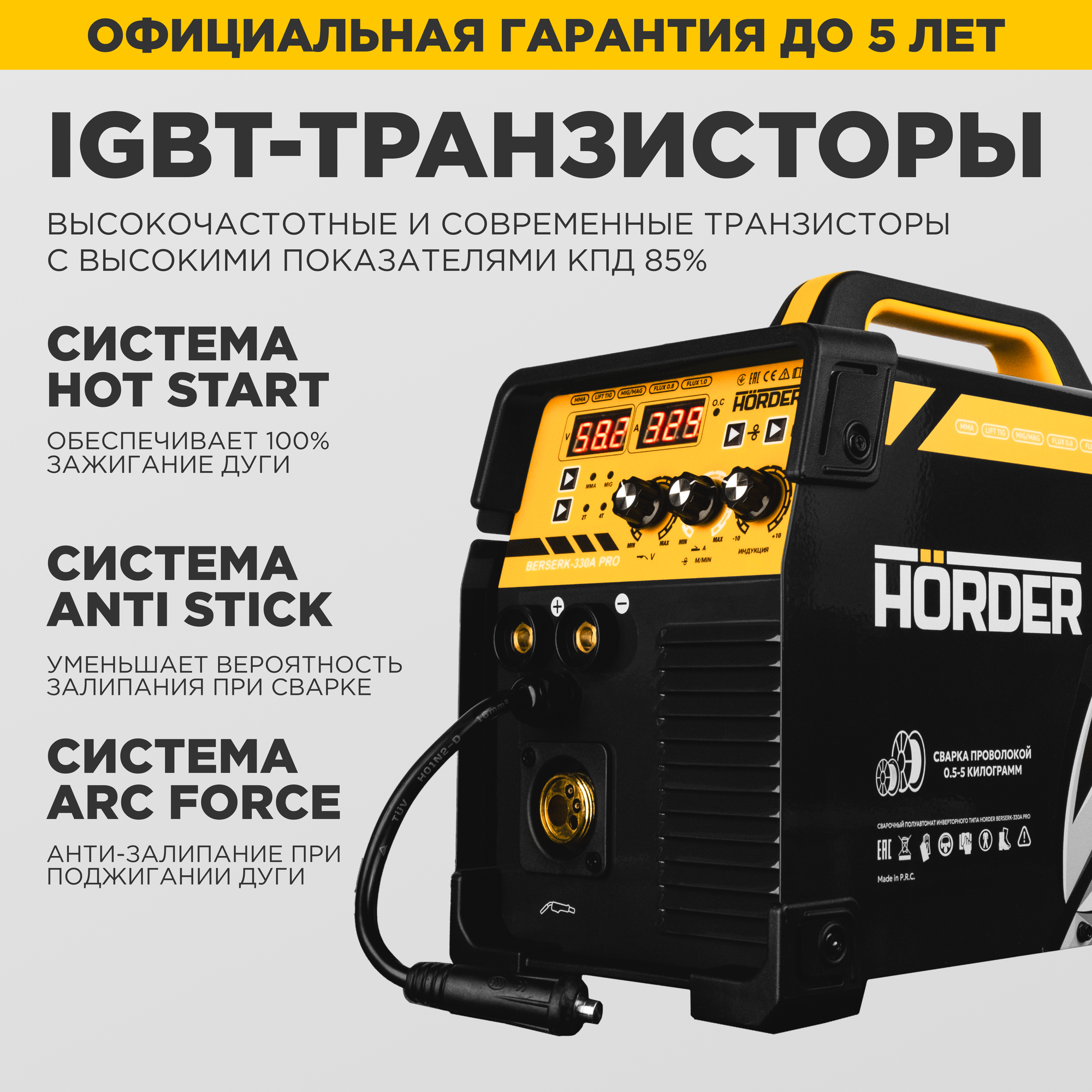 Сварочный аппарат полуавтомат HÖRDER BERSERK 330 A PRO, MIG MAG MMA FCAW LIFT TIG, с газом и без газа интересное: