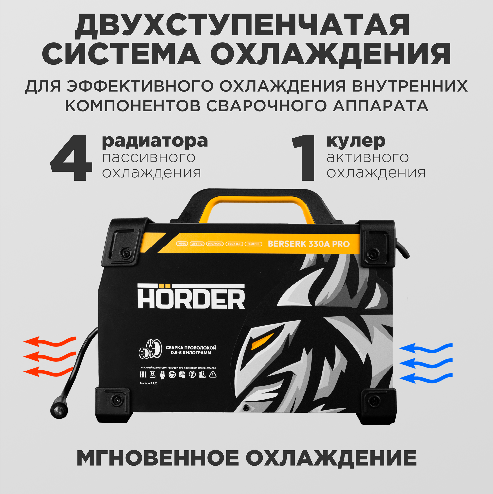 Купить Сварочный аппарат полуавтомат HÖRDER BERSERK 330 A PRO, MIG MAG MMA FCAW LIFT TIG, с газом и без газа