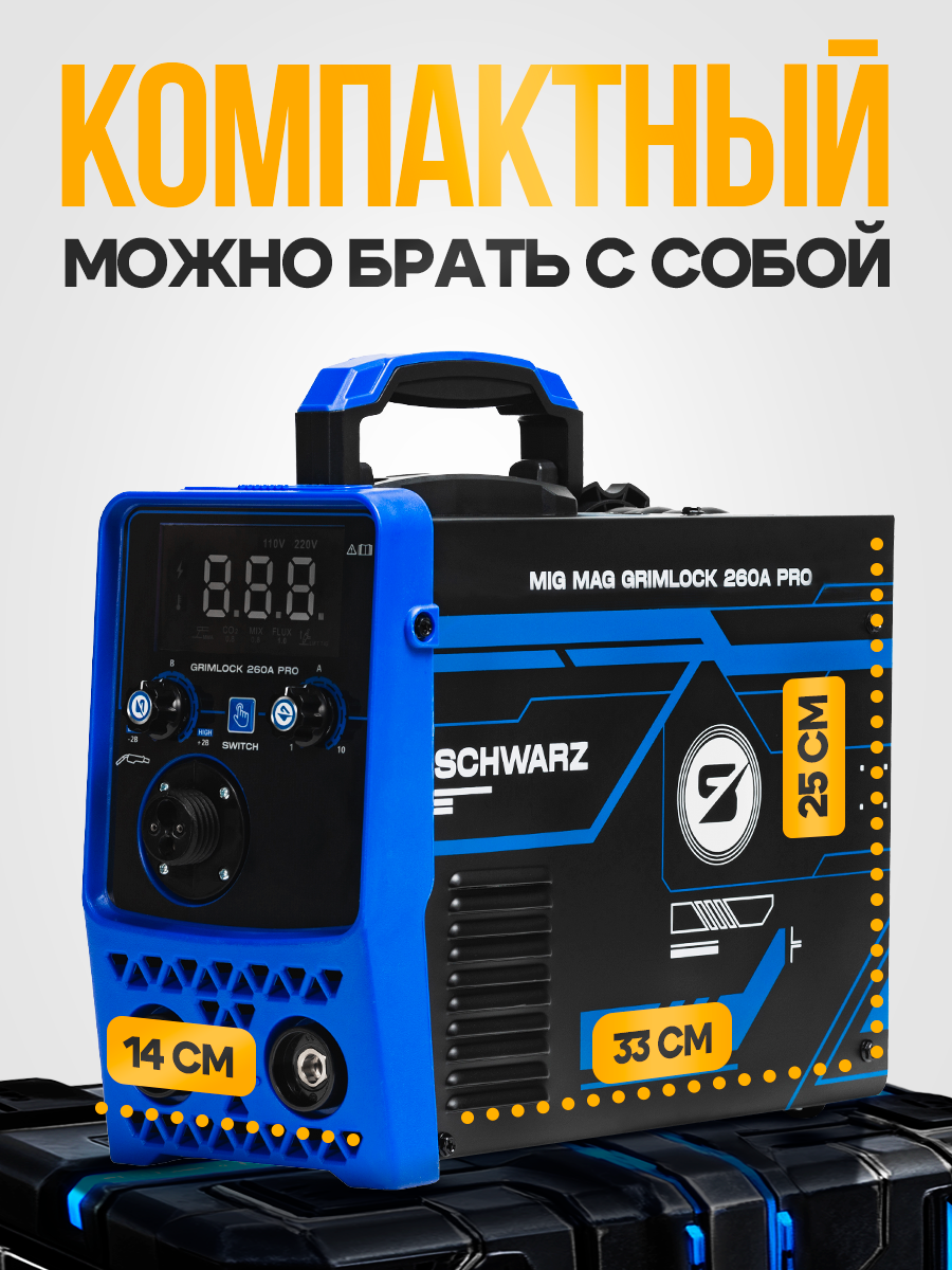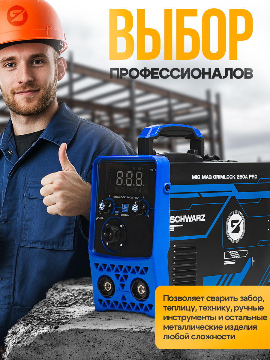 Сварочный аппарат инверторный 260 A PRO / Сварочный полуавтомат с газом и без газа SCHWARZ, MIG MAG MMA FCAW интересное: