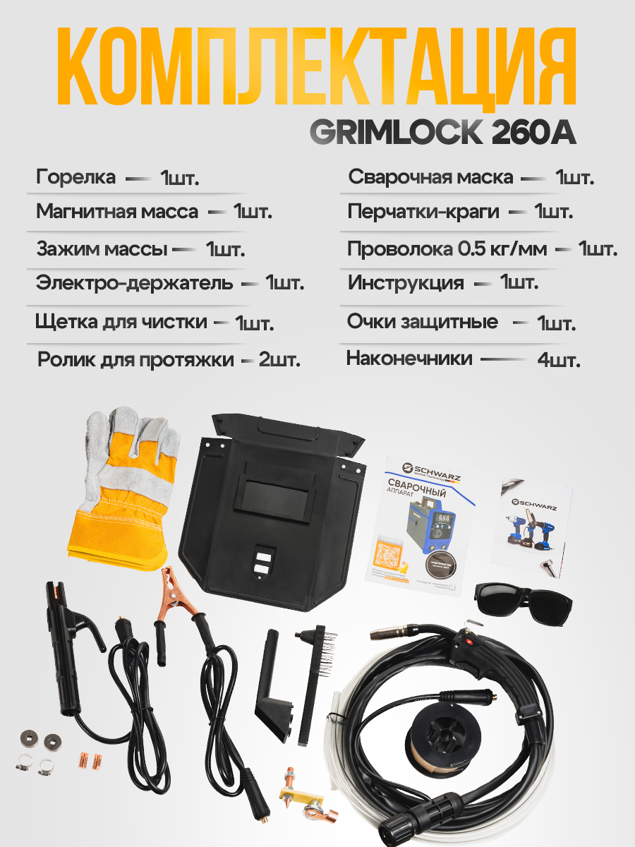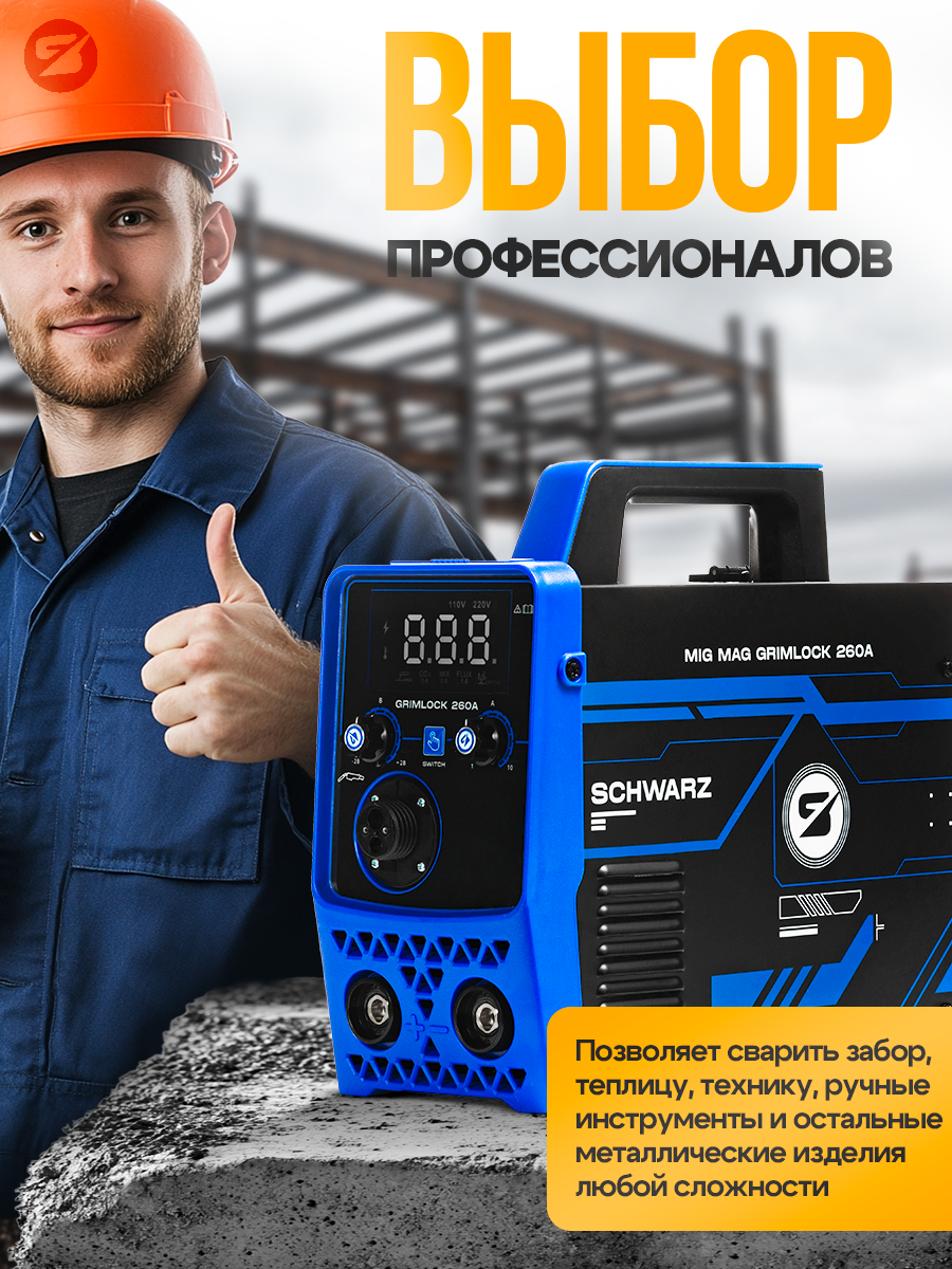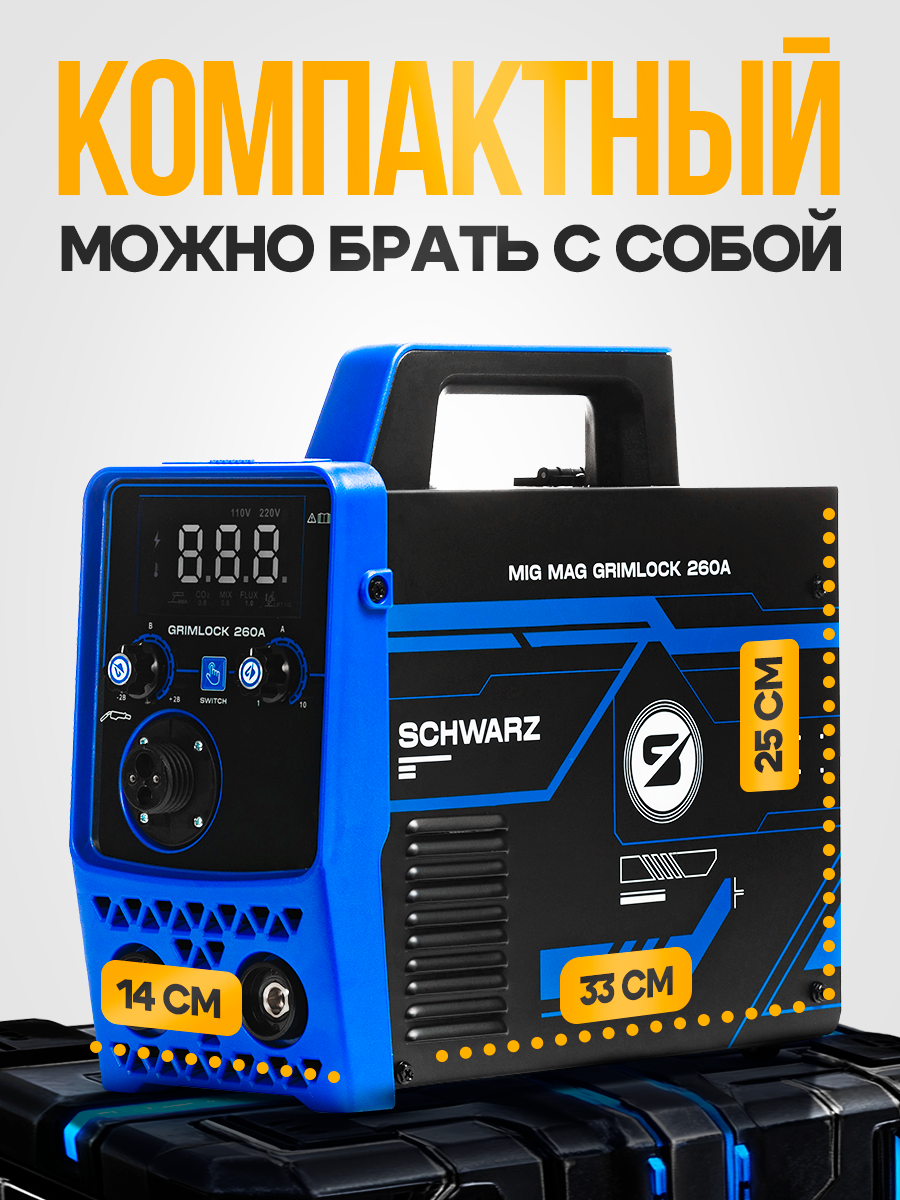 Сварочный аппарат инверторный 260 A PRO / Сварочный полуавтомат с газом и без газа SCHWARZ, MIG MAG MMA FCAW
