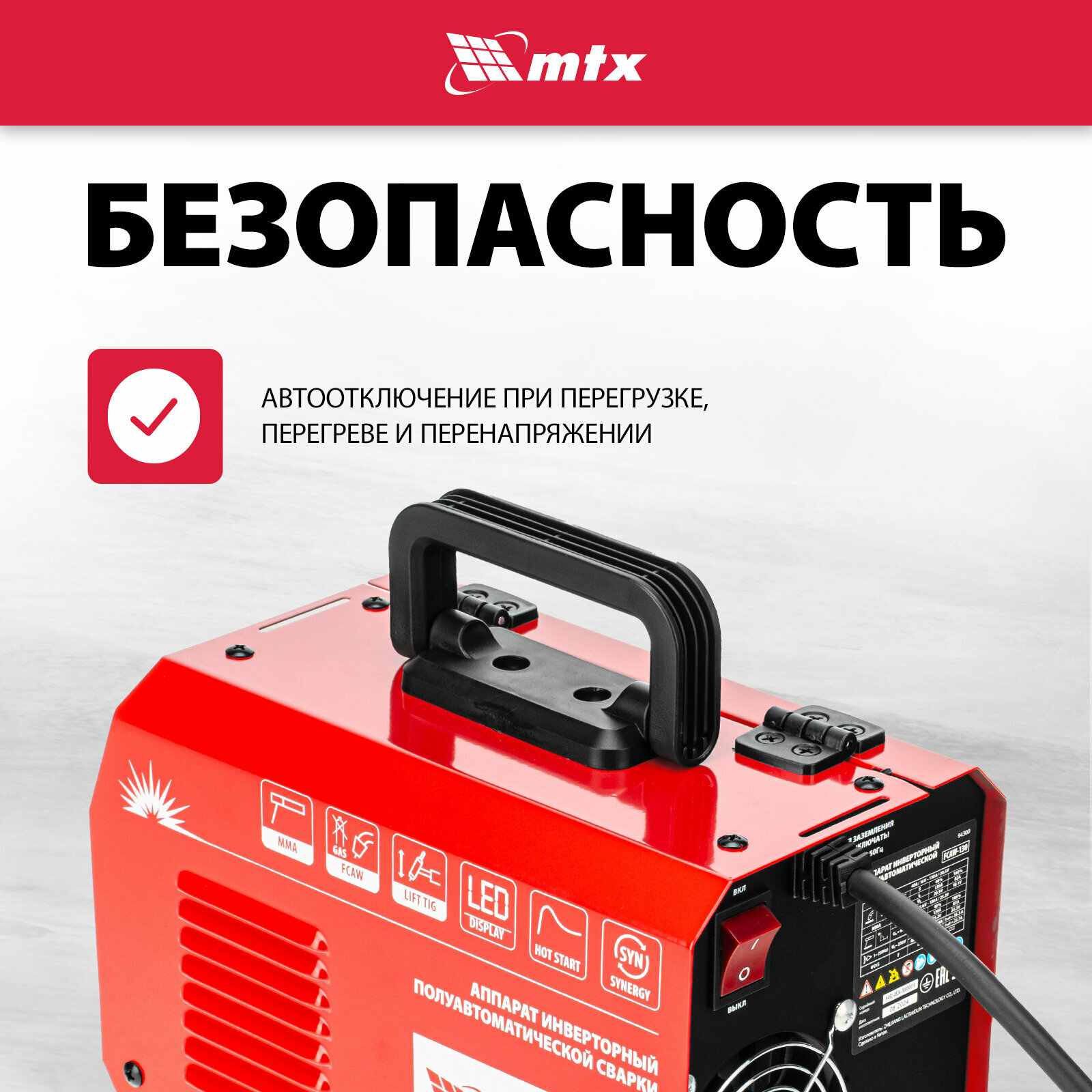 Сварочный аппарат-полуавтомат инверторный MTX, FCAW-130, 130 А, ПВ 60%, 94300 интересное: