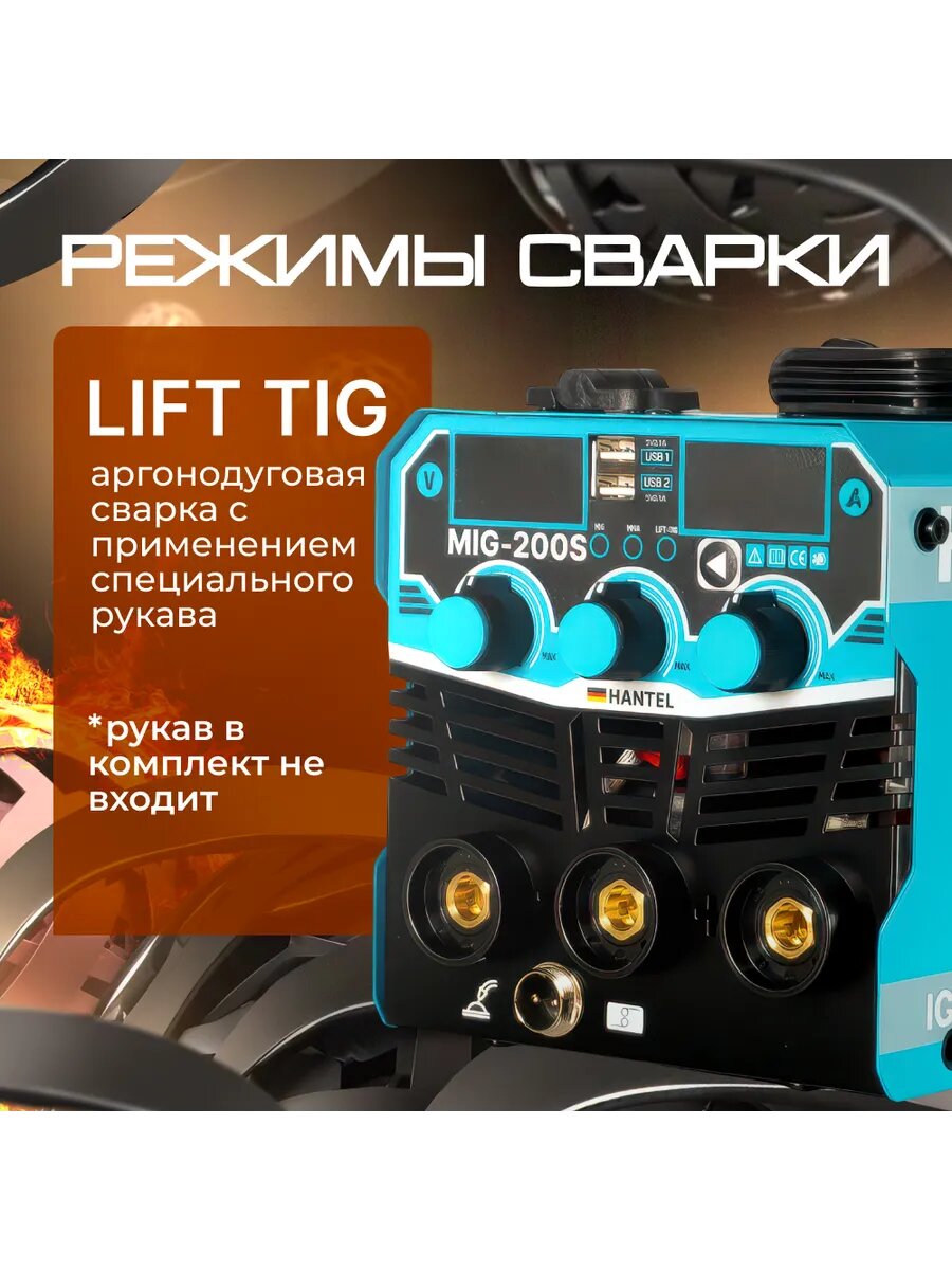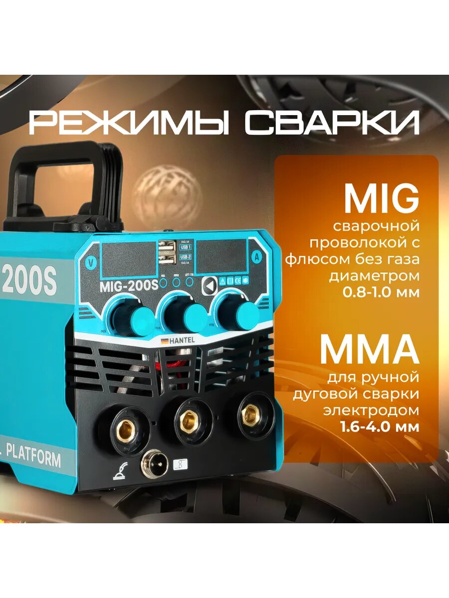 Сварочный полуавтомат инверторный Hantel MIG-200S, без газа, 200A, защита от перегрева интересное: