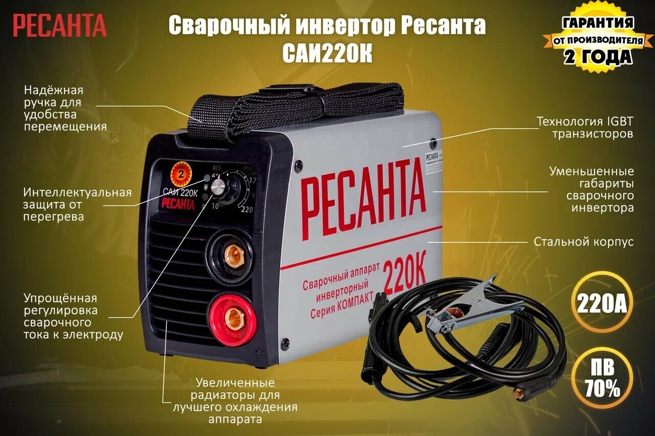Сварочный аппарат инверторный САИ220К(компакт) Ресанта, 65/37 интересное: