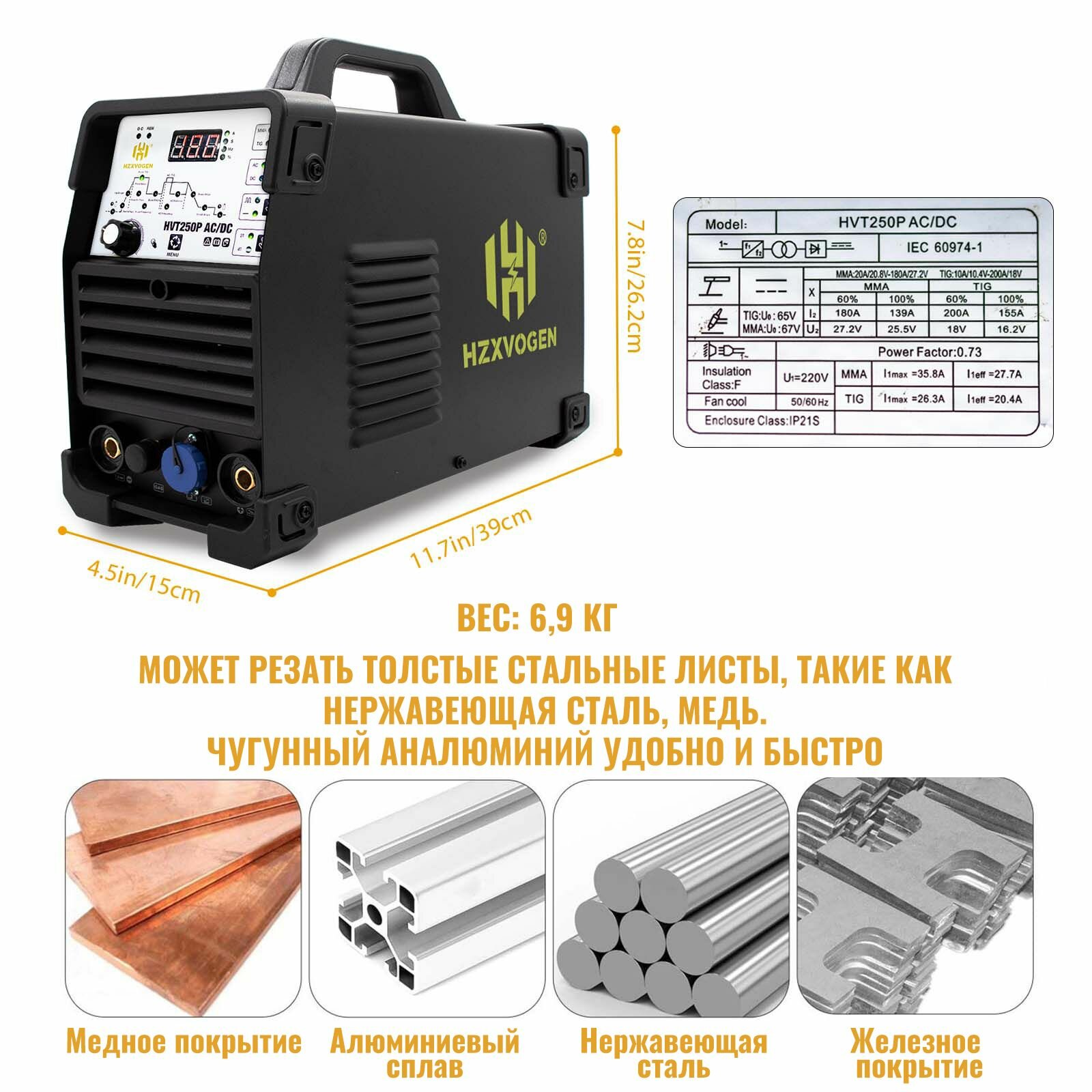 Сварочный Аппарат Инверторный Полуавтомат HZXVOGEN HVT250P AC/DC С Ножным Переключателем/Перчатками интересное:
