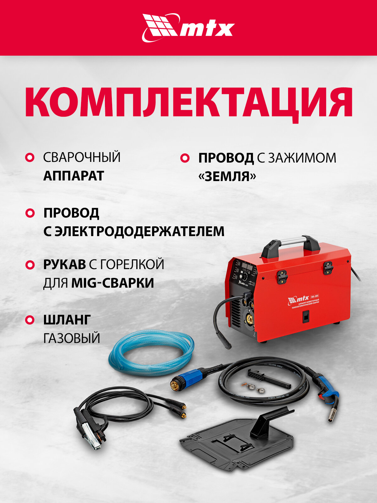 Сварочный аппарат-полуавтомат инверторный MTX MIG-200S, 200A, ПВ 60%, катушка 5 кг 94303 интересное: