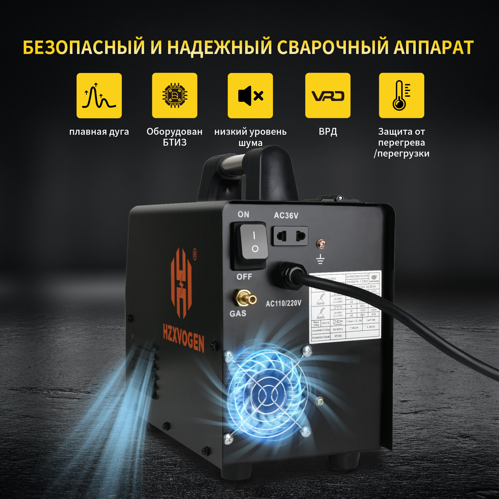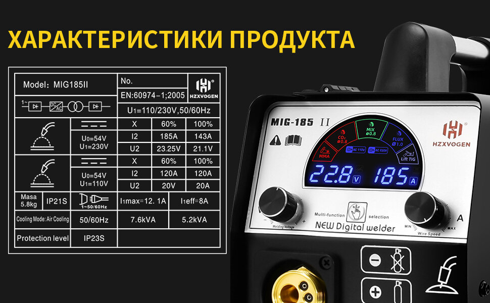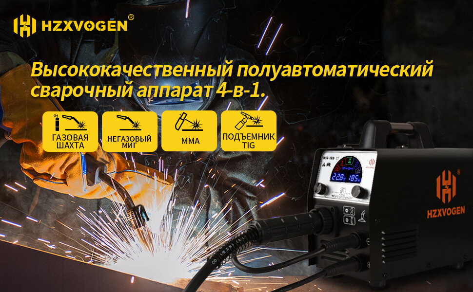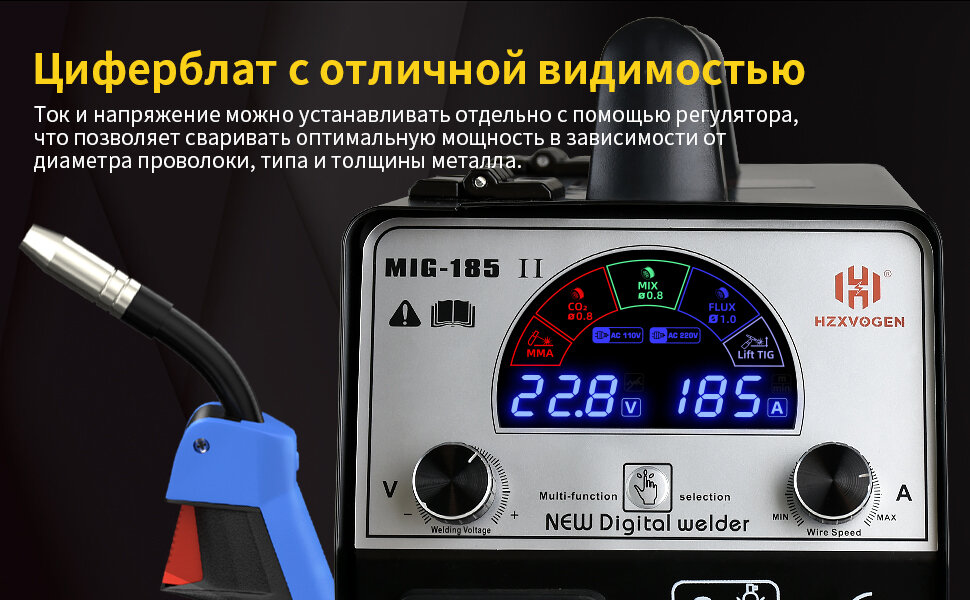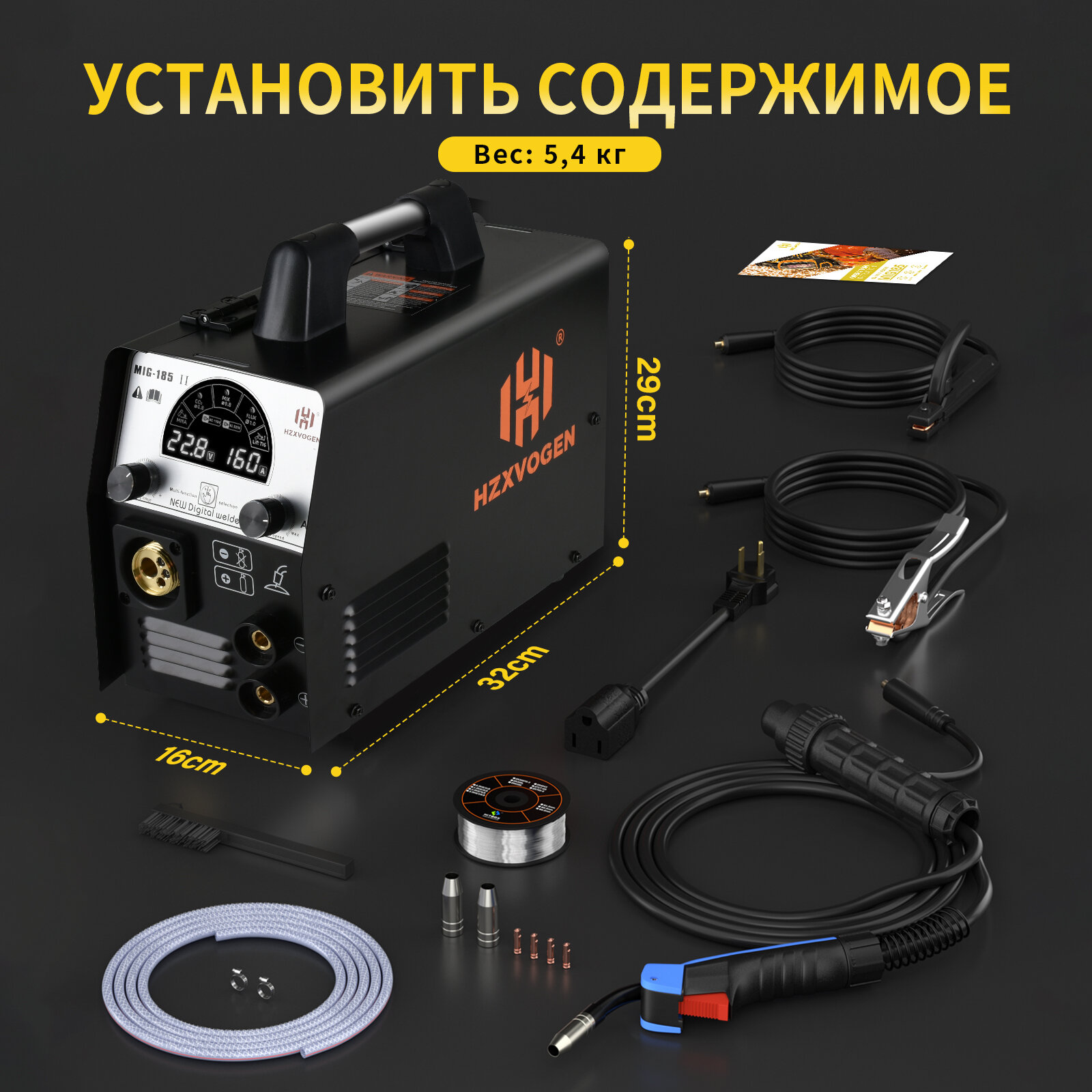 Сварочный полуавтомат без газа, с газом HZXVOGEN MIG185-II 4 в 1(ММА/MIG без газа / С газом/LIFT TIG) интересное:
