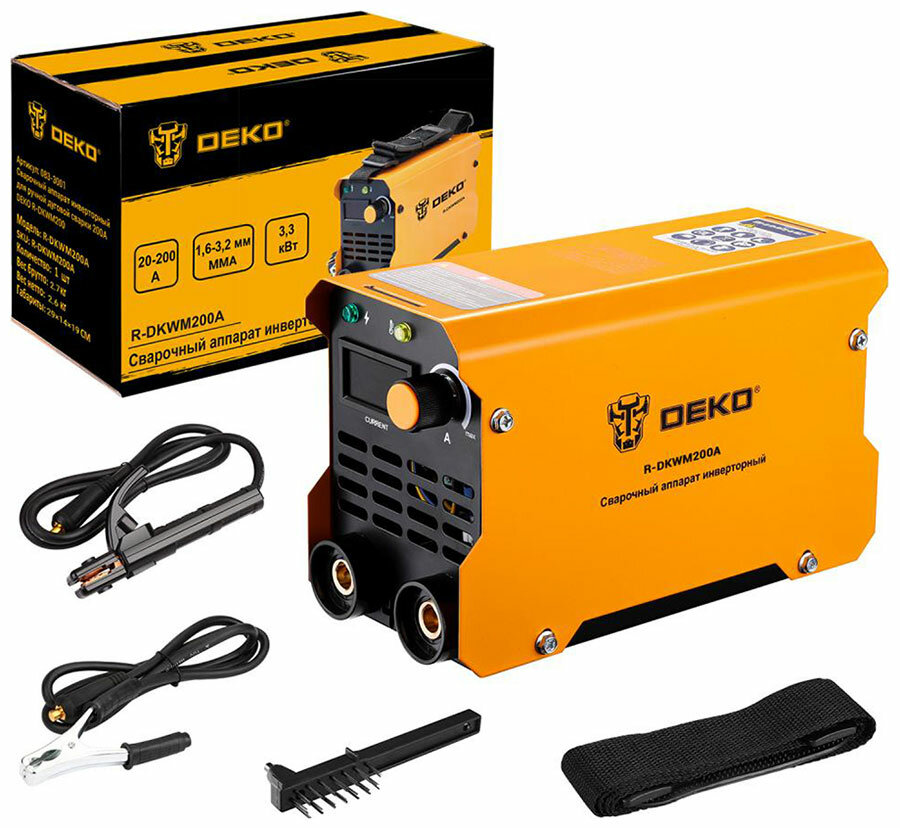 Сварочный аппарат инверторный Deko для ручной дуговой сварки, 200A, R-DKWM200, оранжевый интересное: