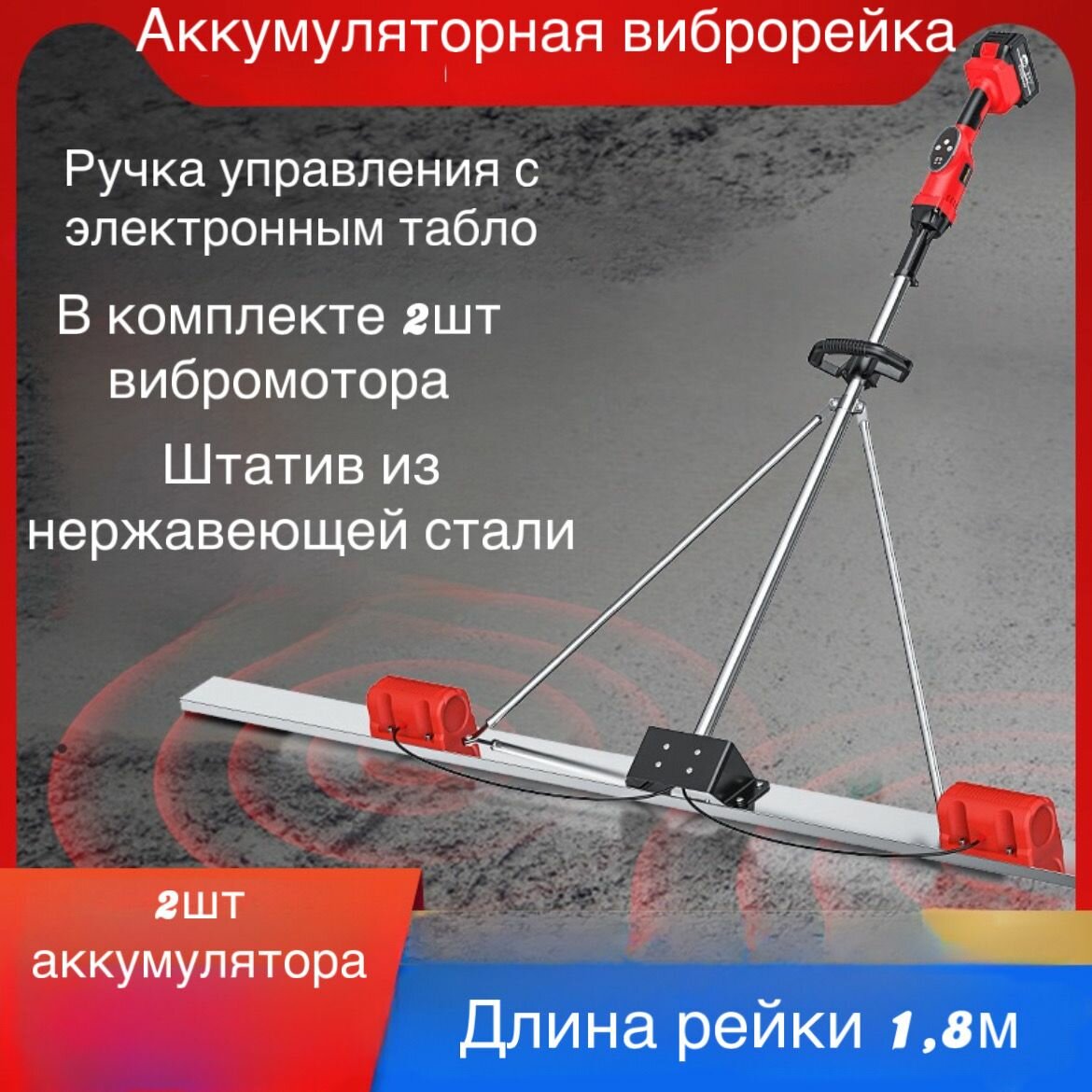 Виброрейка аккумуляторная 1.8X009, длина 1800мм, ширина 80мм, в комплекте 2шт двигателя интересное: