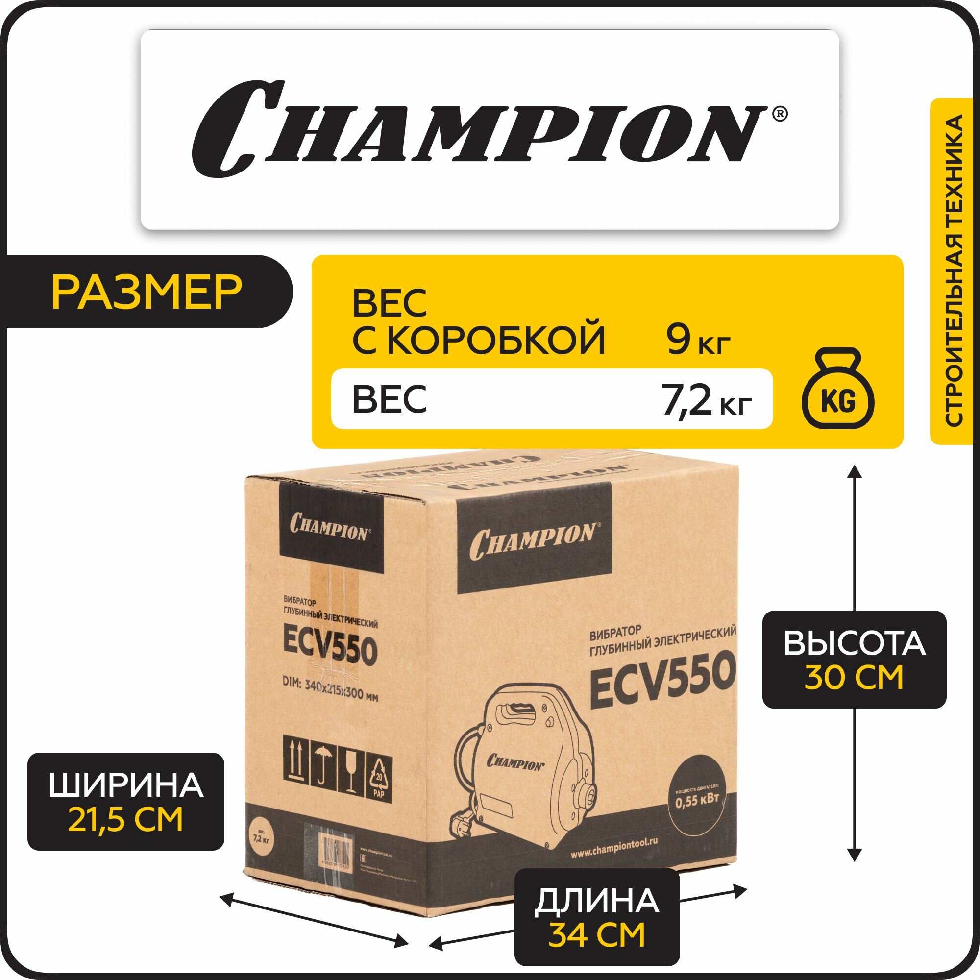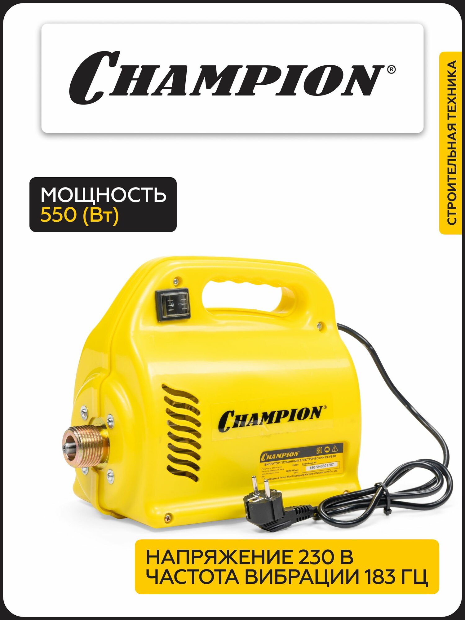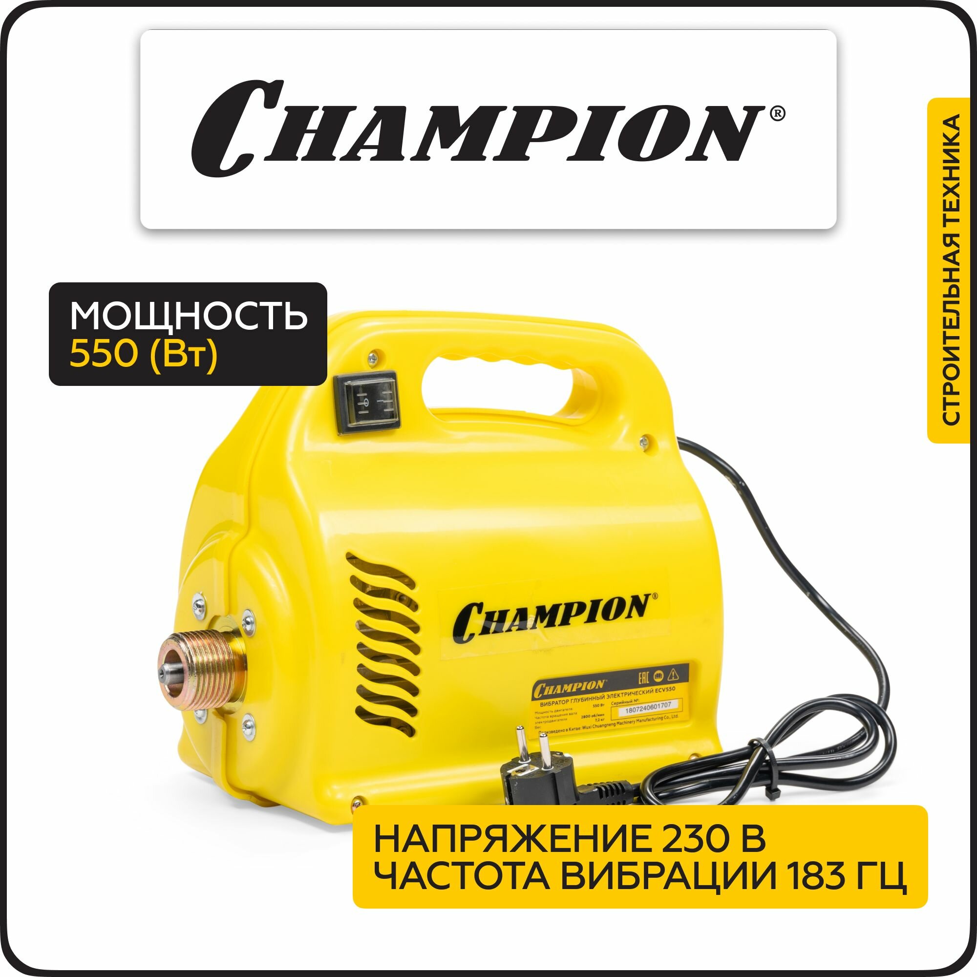 Вибратор глубинный электрический CHAMPION ECV550, 550 Вт, 7,2 кг, 4 м, без вала и вибронаконечника интересное: