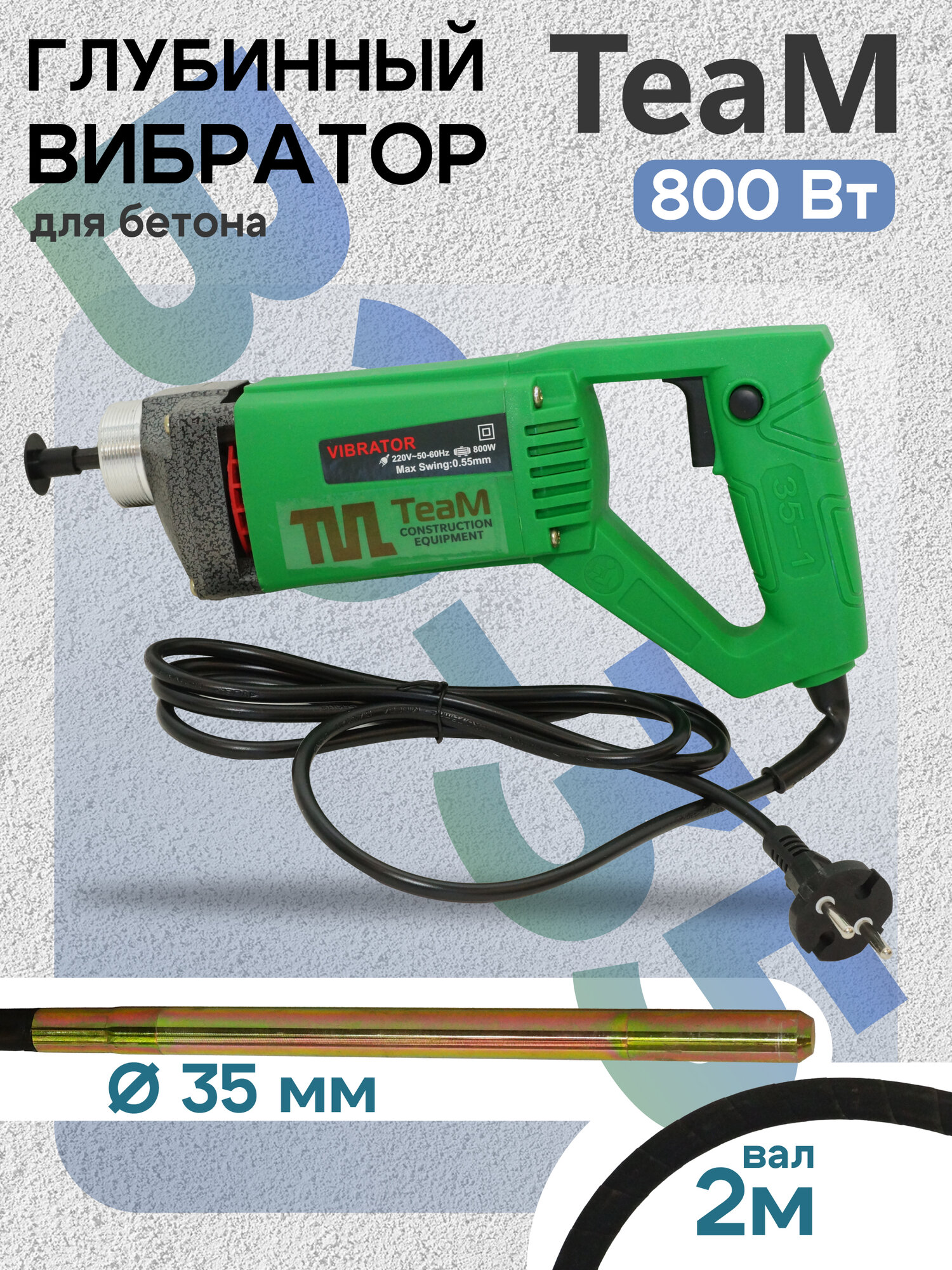 Глубинный вибратор для бетона Промышленник ВЭ-35-800 интересное: