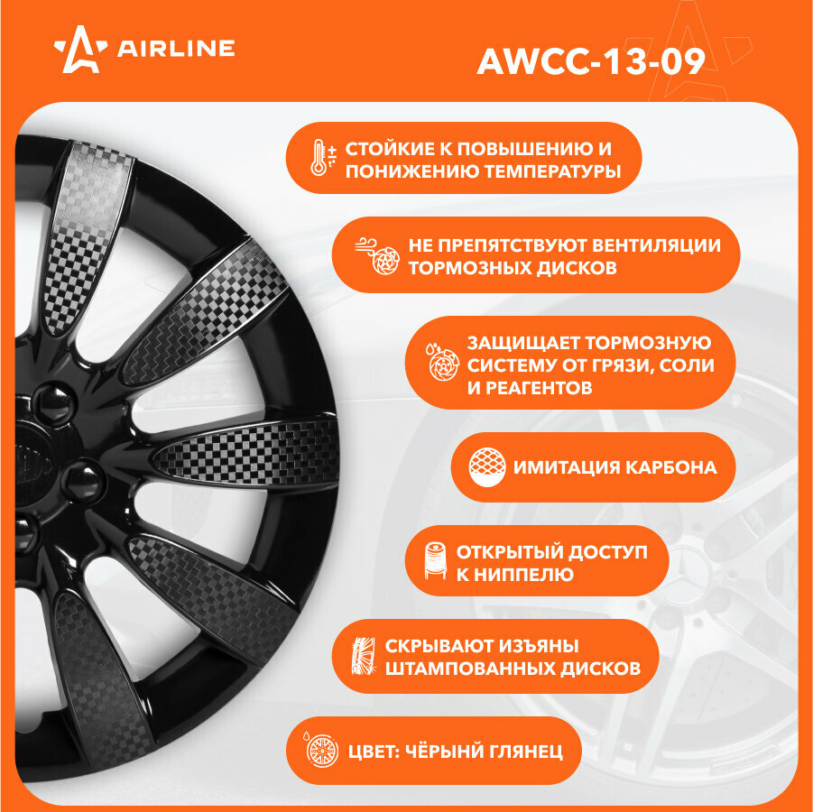 AIRLINE AWCC-13-09 Колпаки колесные 13 Торнадо , черный глянец, карбон, .
