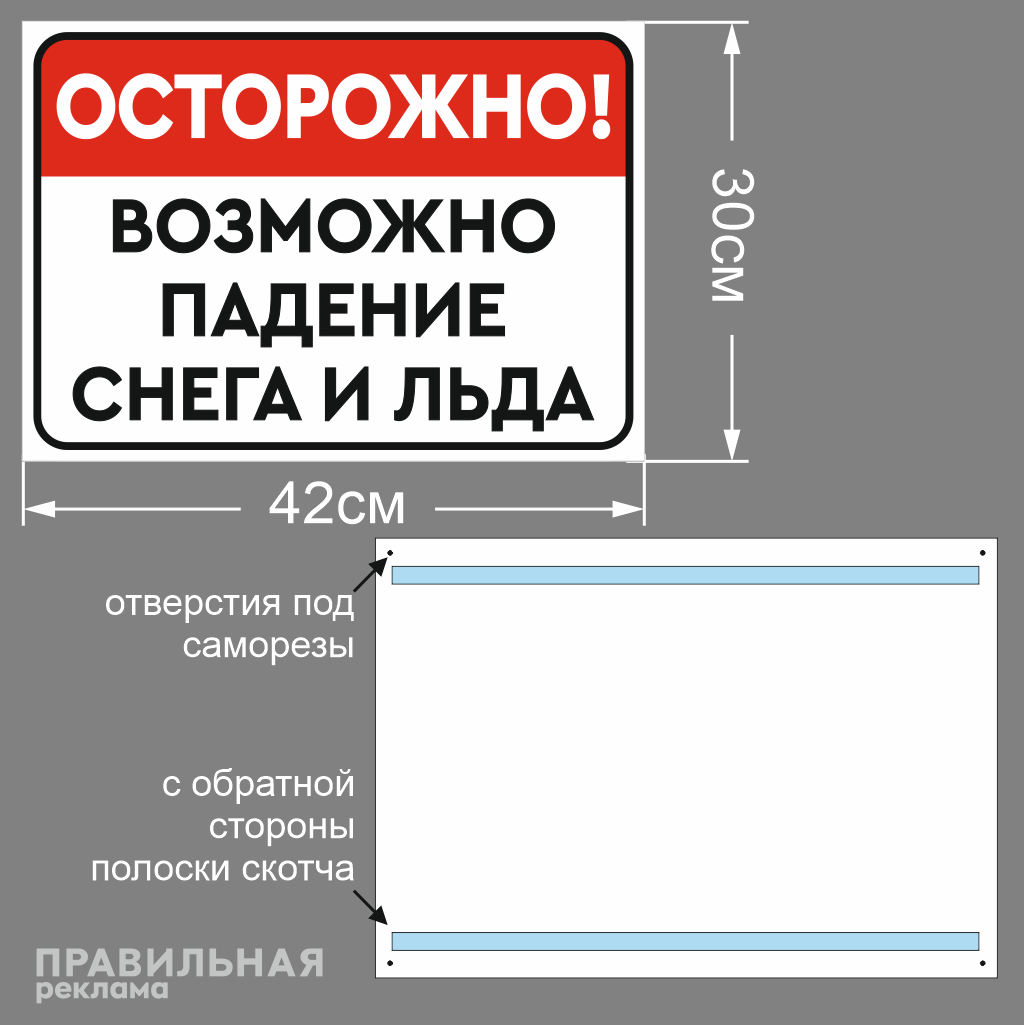 Табличка Осторожно Возможно падение льда и снега А3 (30х42 см) интересное: