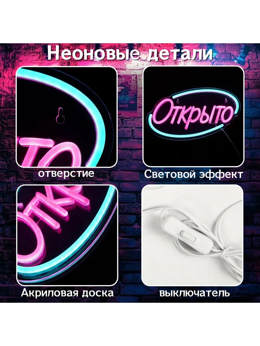 Неоновая вывеска Открыто, 33x18 см интересное: