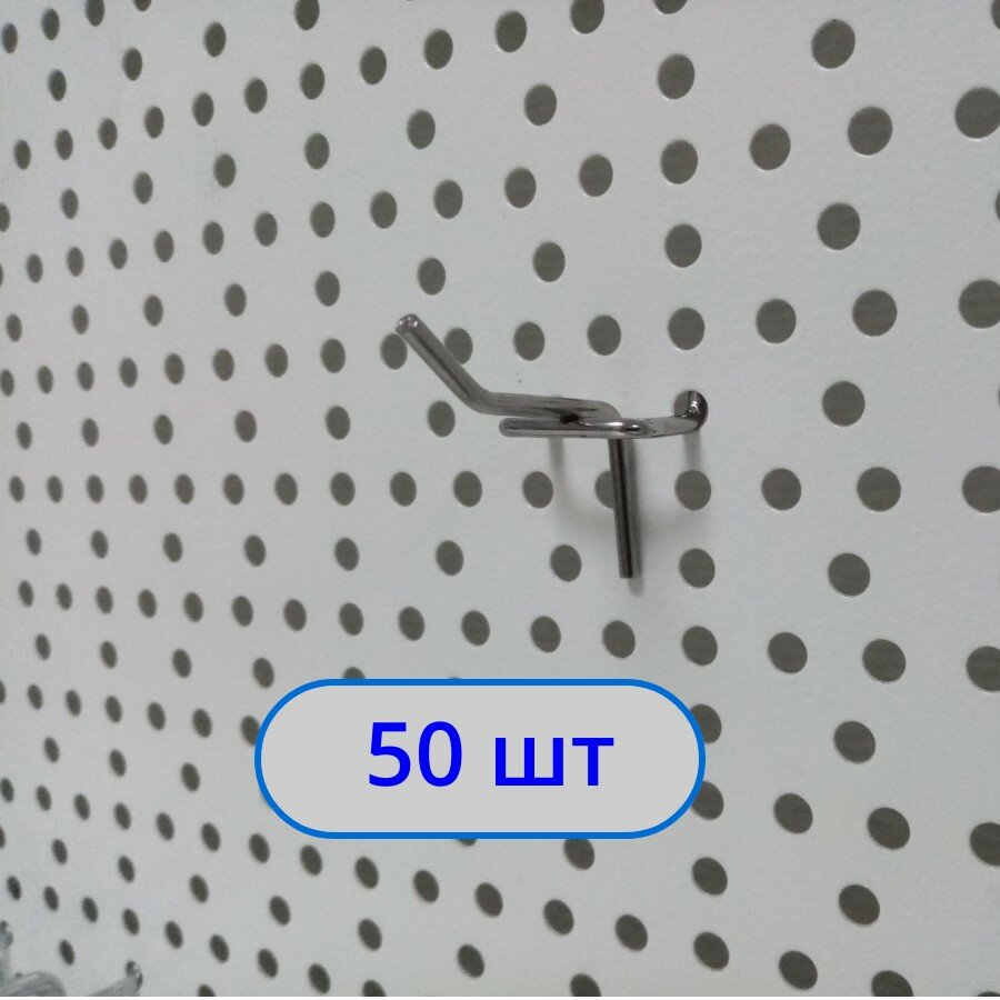 Купить Крючок одинарный 50 мм на перфорацию (толщина 3.3мм) Шаг 25мм Хром, 50шт