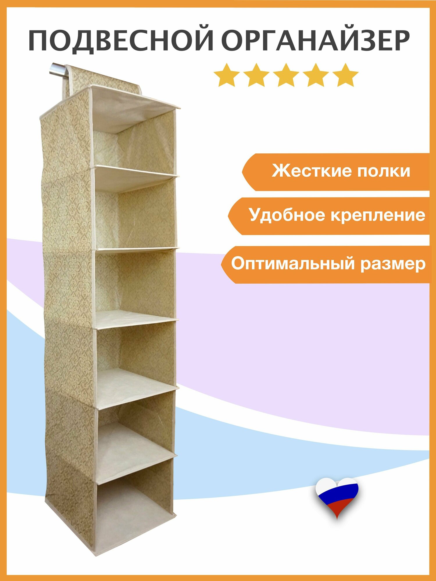 Органайзер с 6 полками в шкаф / подвесные полки на штангу / Органайзер для гардероба 120 см