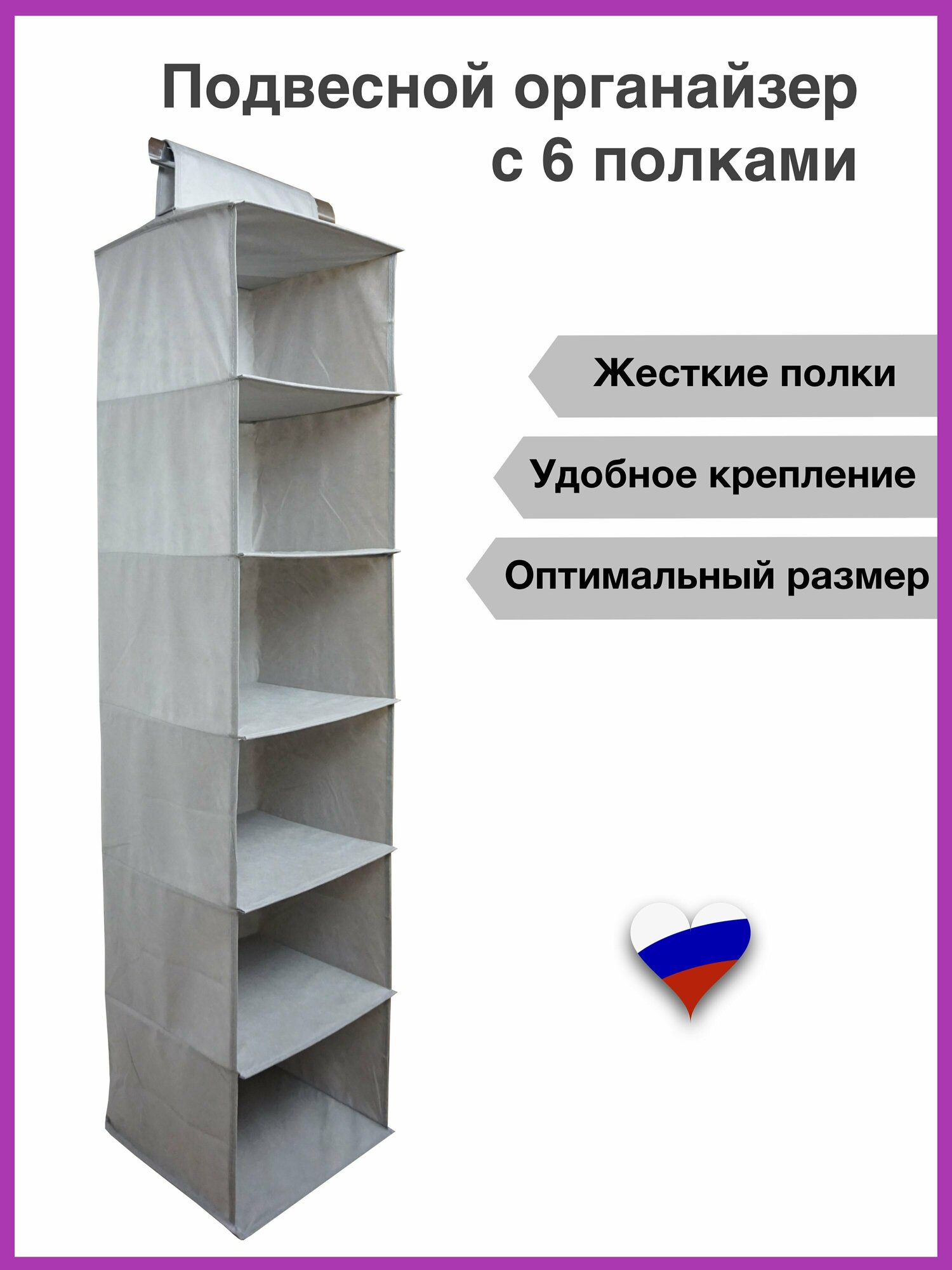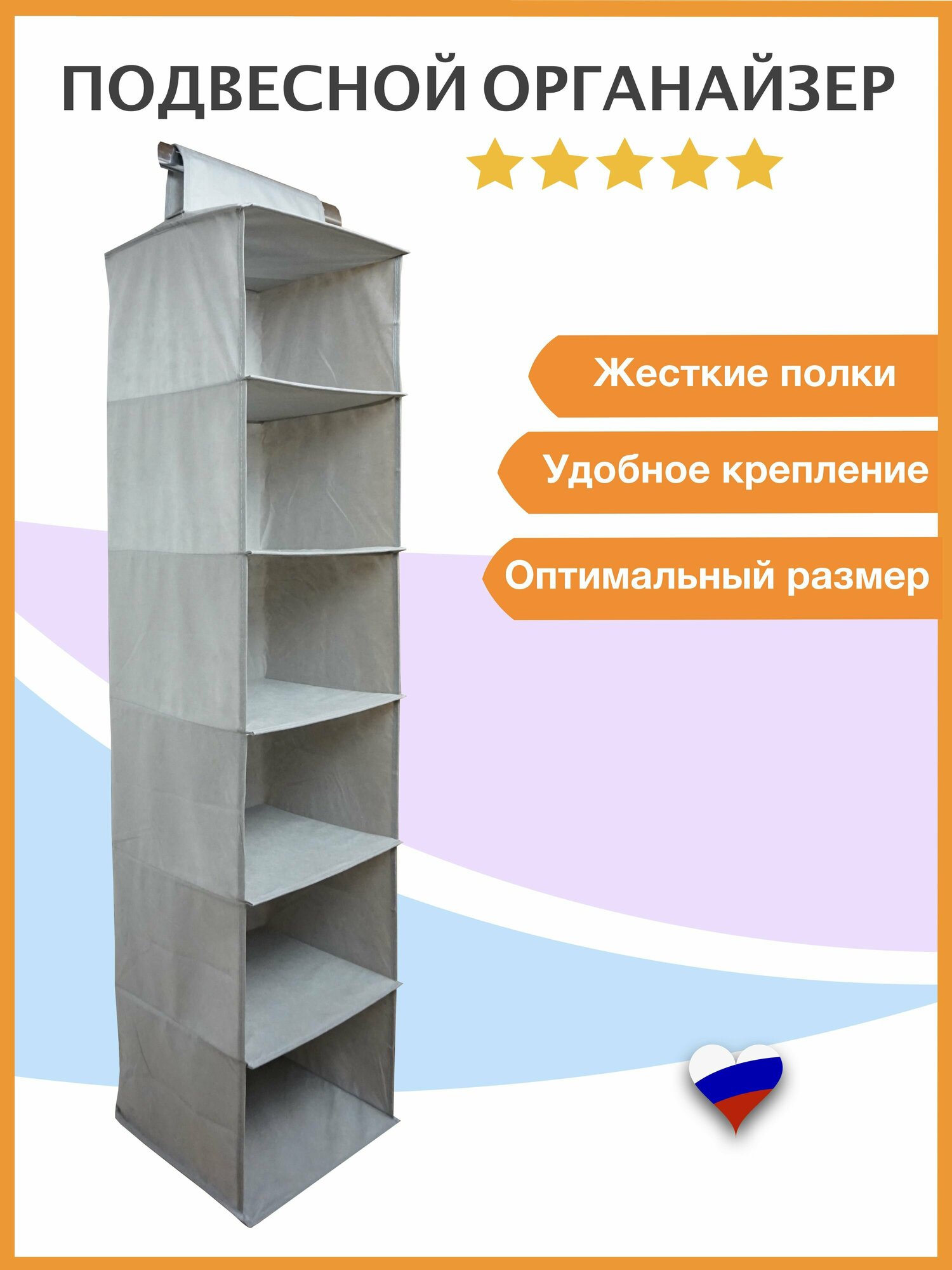 Органайзер с 6 полками в шкаф / подвесные полки на штангу / Органайзер для гардероба 120 см