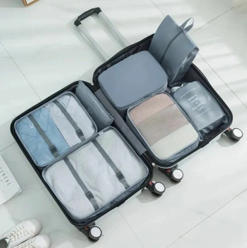 Купить Большой набор из 7 дорожных органайзеров / Комплект сумок для размещения вещей в чемодане, для хранения в шкафу серые