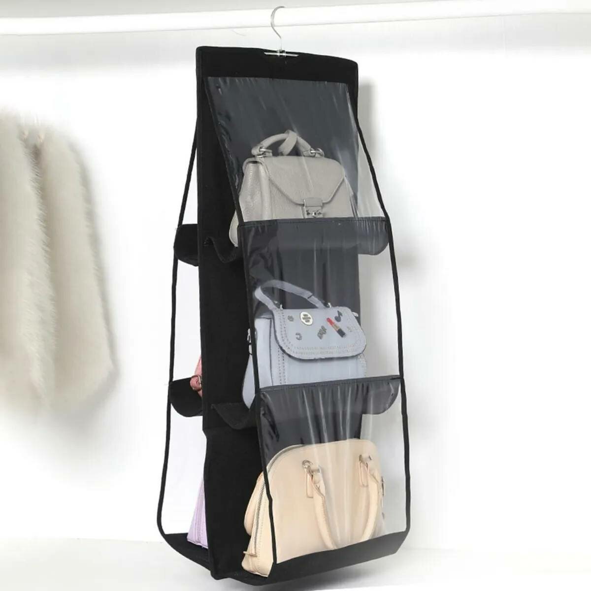 Органайзер подвесной двусторонний для хранения сумок, 6 секций, черный интересное: