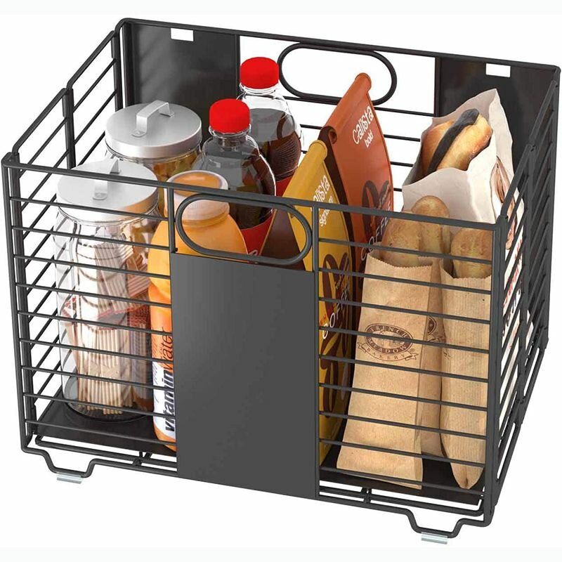 Органайзер для хранения, полка стеллаж выдвижной металл черная большая под мойку для кухни ванной
