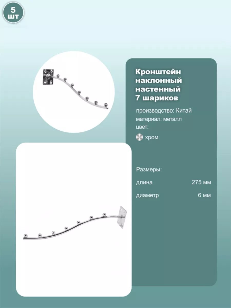 СохранитьКронштейн настенный наклонный 7 шариков, 275мм, хром, 5шт. интересное: