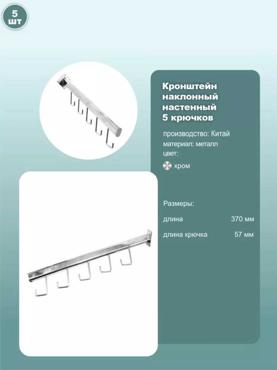 СохранитьКронштейн настенный наклонный 5 крючков, 370мм, хром, 5шт. интересное: