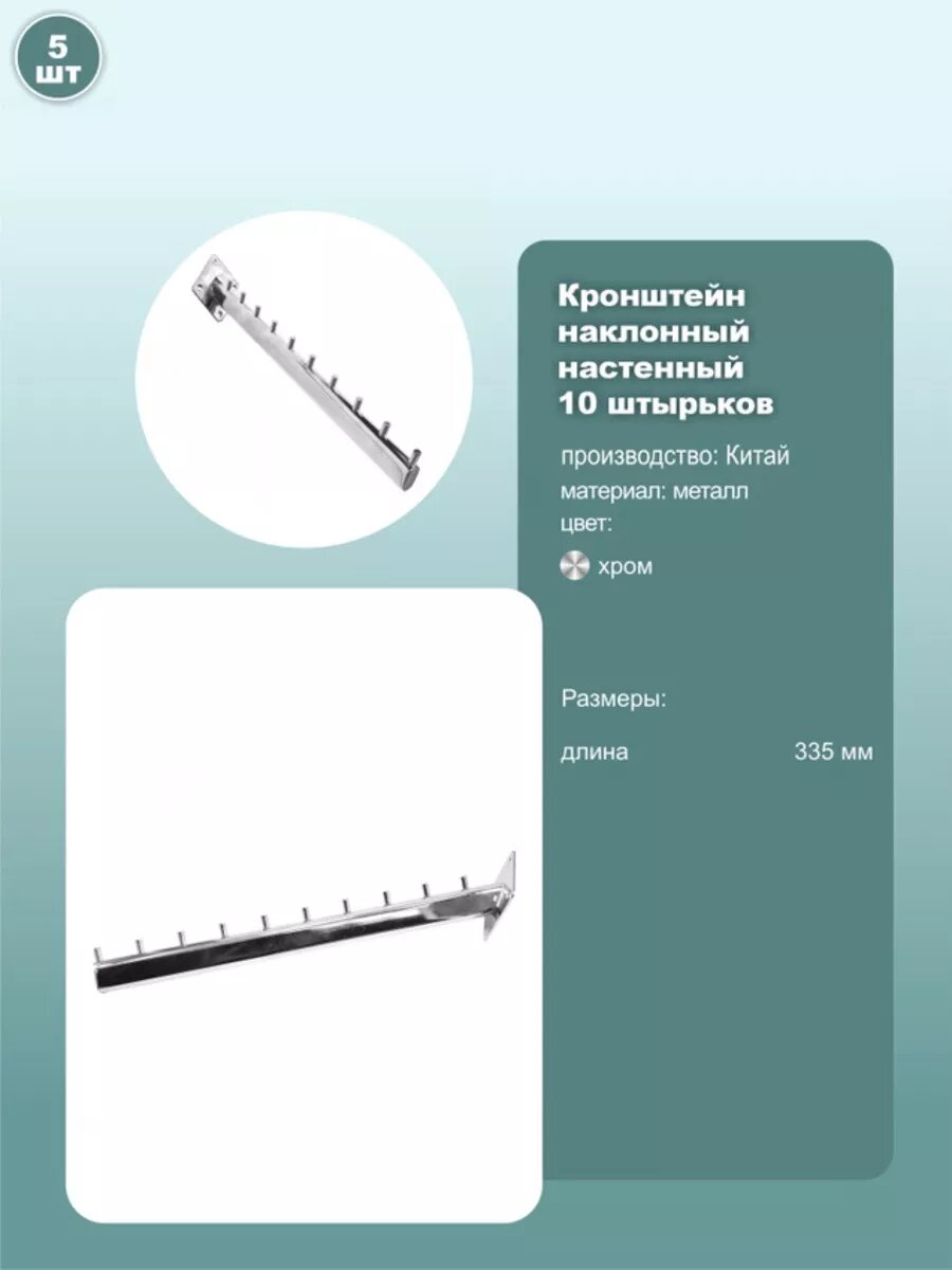 СохранитьКронштейн настенный наклонный 10 штырьков, 335мм, хром, 5шт. интересное: