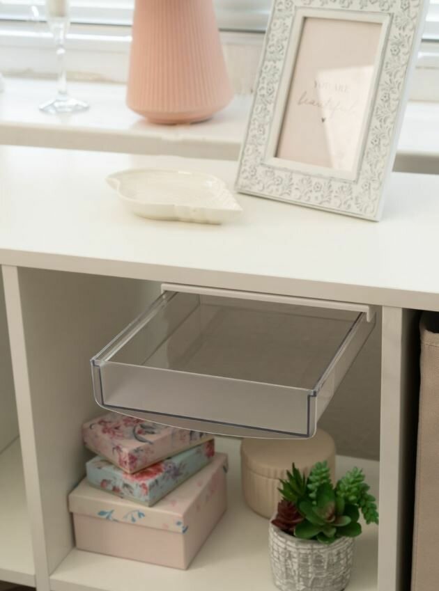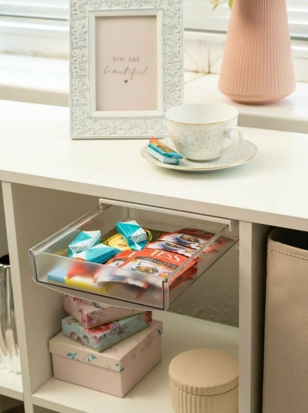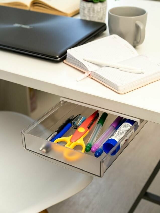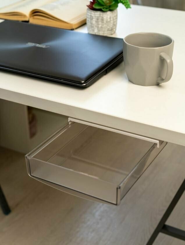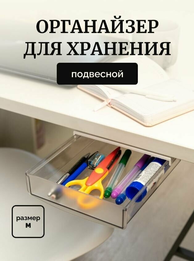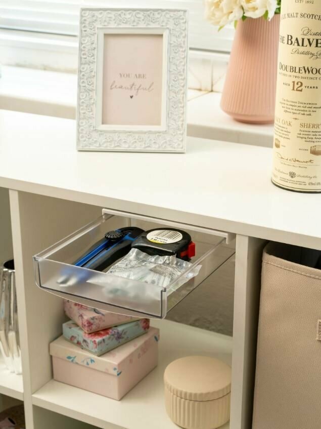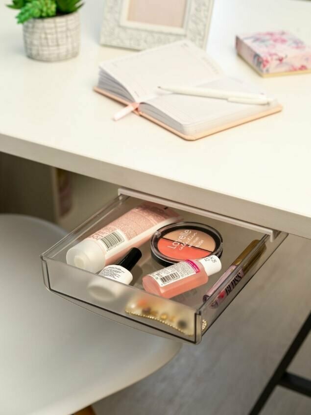 Подвесной выдвижной ящик для стола. Органайзер для хранения вещей, канцелярии, косметики подвесной 21*18,5*5,3 см интересное: