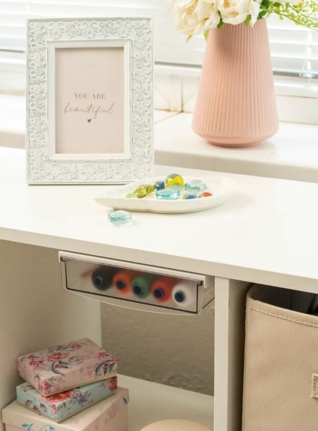 Купить Подвесной выдвижной ящик для стола. Органайзер для хранения вещей, канцелярии, косметики подвесной 21*18,5*5,3 см