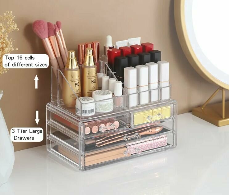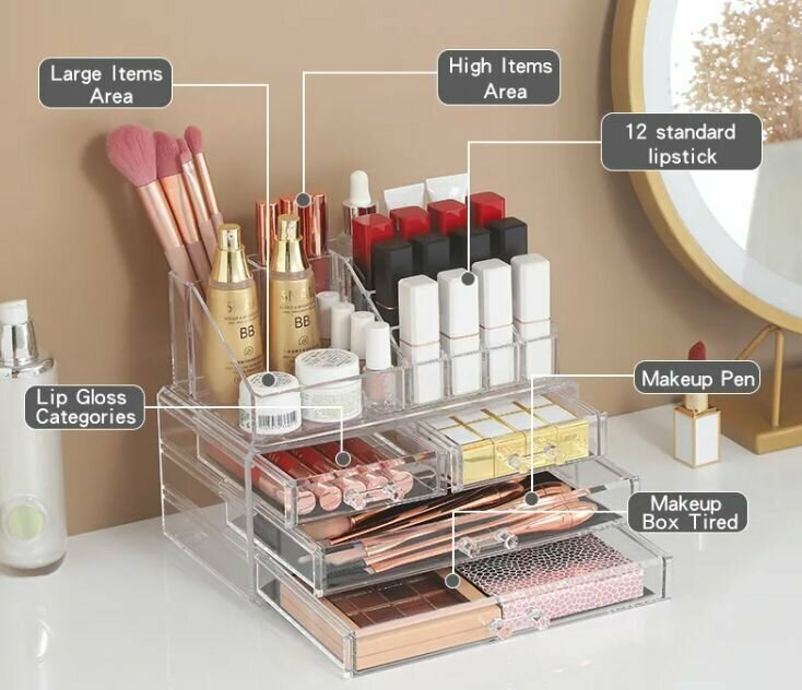 Органайзер для косметики и украшений двухъярусный прозрачный интересное: