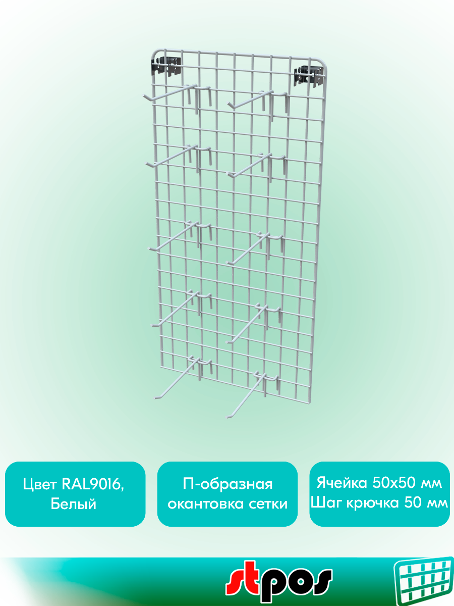 Купить КОМПЛЕКТ Сетка 700х350мм с П-окантовкой, RAL9016 Белый+Крючок одинарный 200мм, d5, шаг 50мм-10 шт+Скобы SLN025