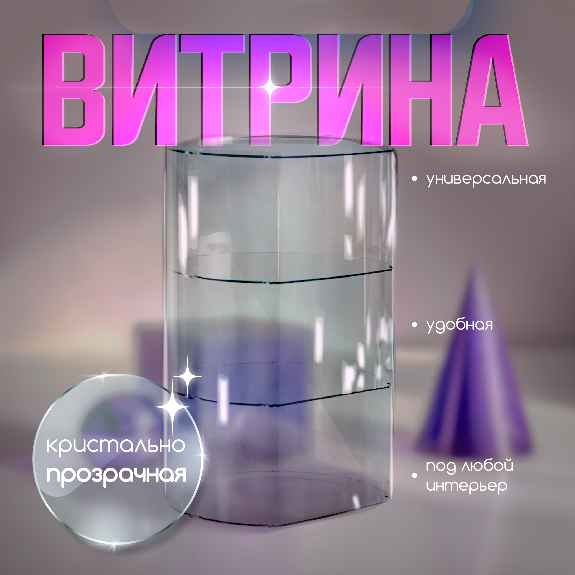 Витрина универсальная из оргстекла с 3-мя полками круглая интересное: