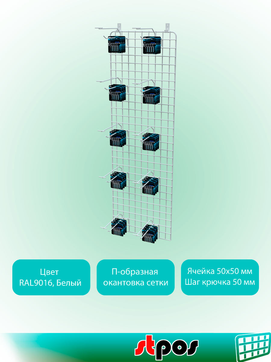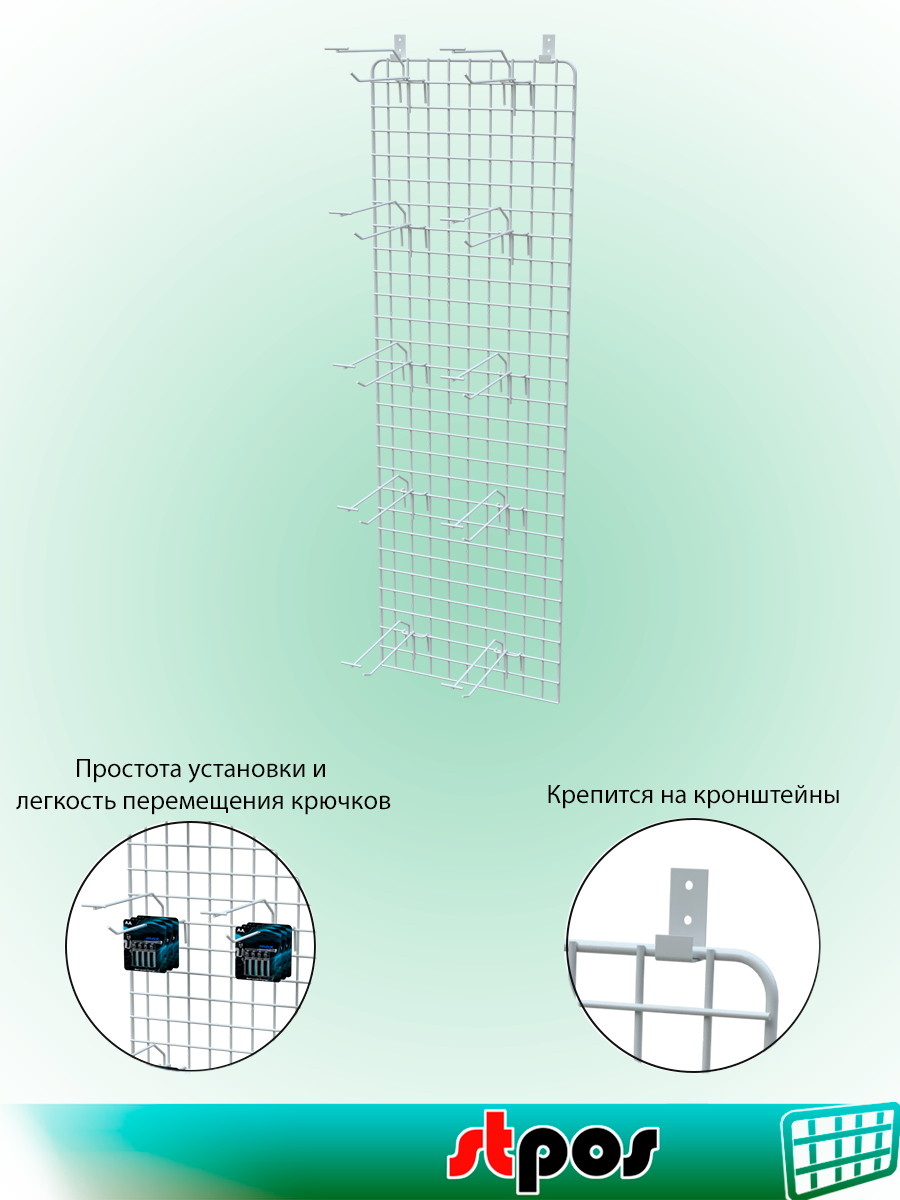 КОМПЛЕКТ Сетка 1200х350, Белый+Крючок одинарный 200 мм с ц/д , d4/d4, шаг 50-10 шт+Кронштейны интересное: