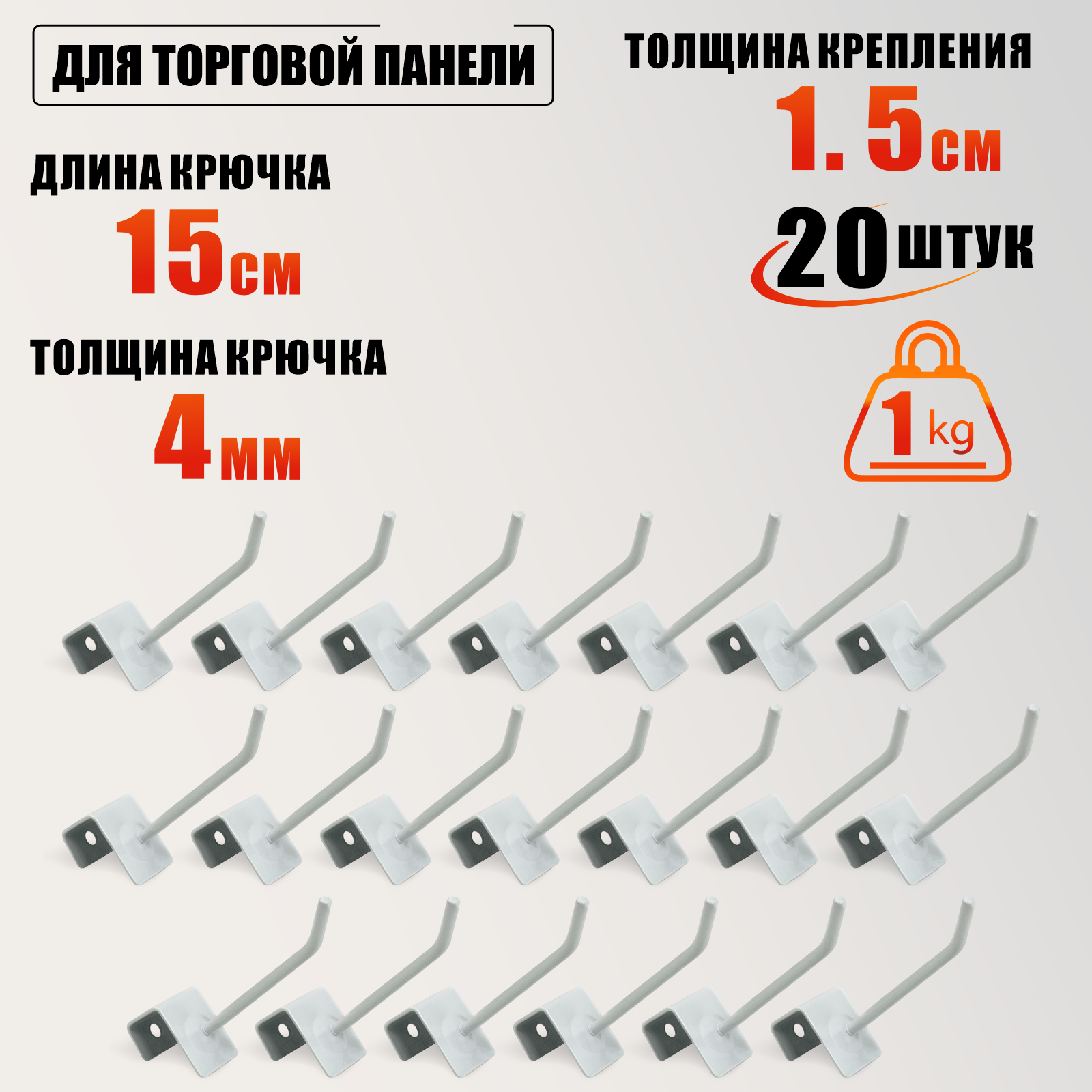 Крючок для торговой панели толщиной до 1.5 см, длина 15 см, белый, 20 шт интересное: