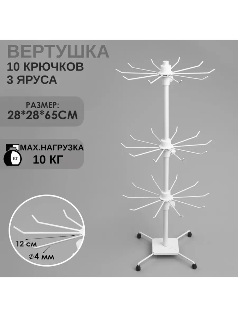 Вертушка настольная белая 3 яруса для крючков 28x28x65 интересное: