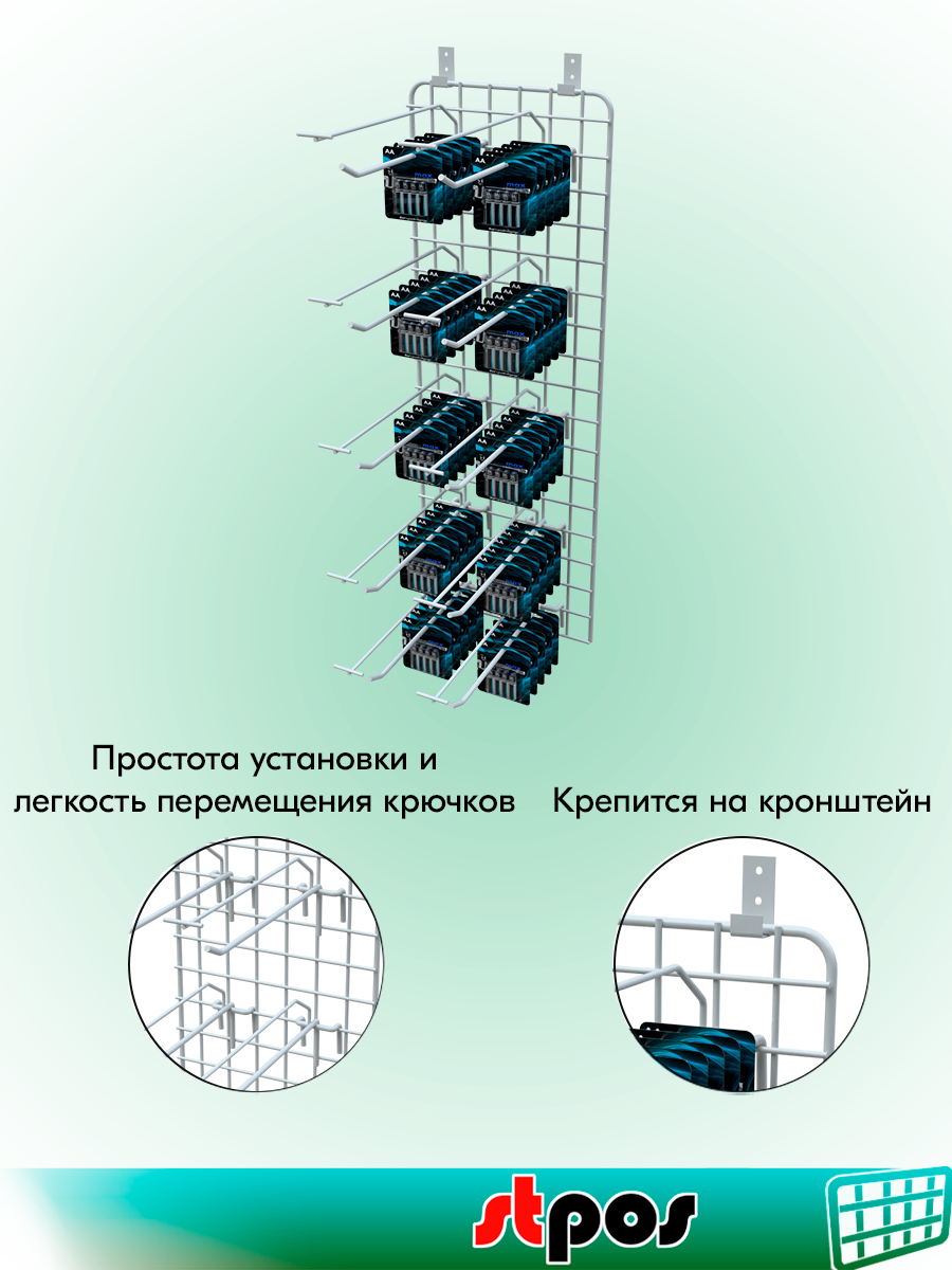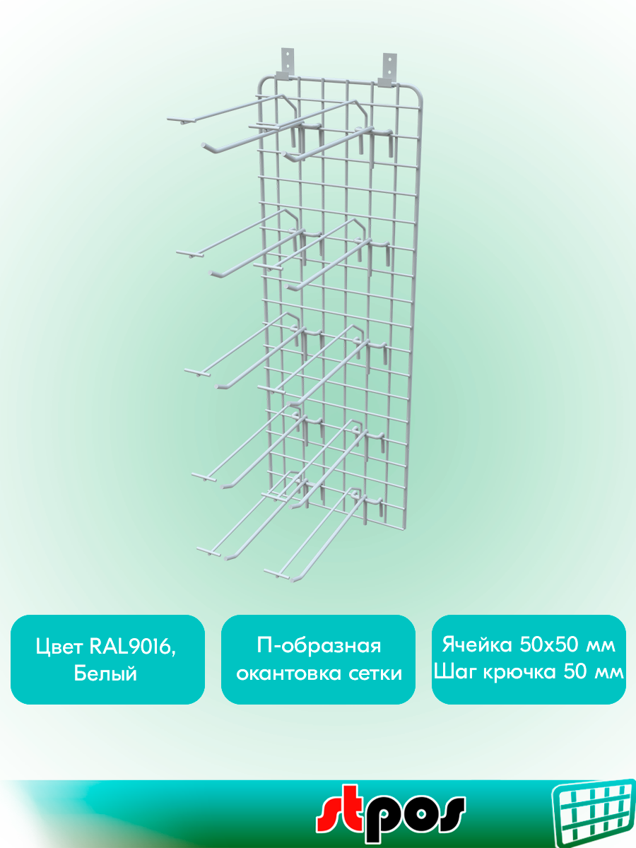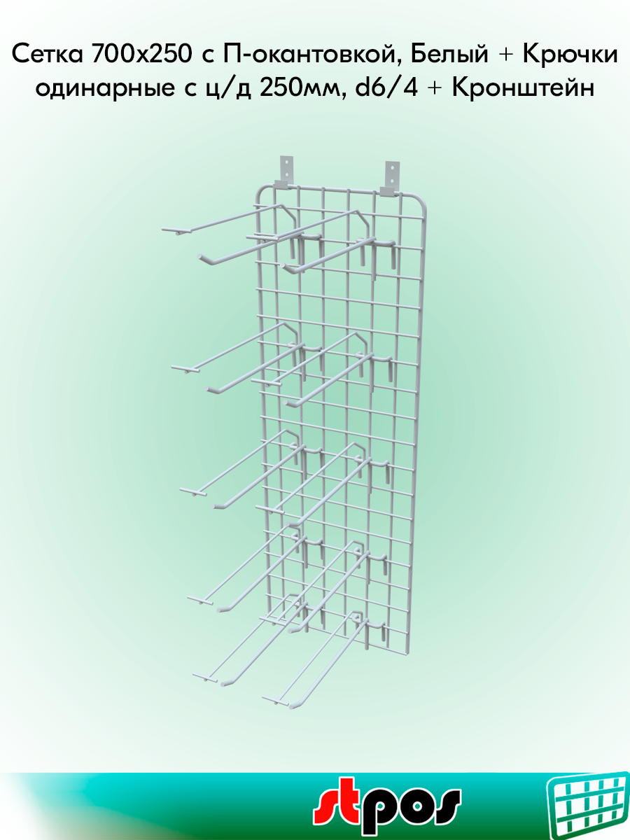 КОМПЛЕКТ Сетка 700х250 с П-окантовкой, RAL9016, Белый + Крючки одинарные с ц/д 250мм, d6/d4, шаг 50мм-10 шт + Кронштейн интересное: