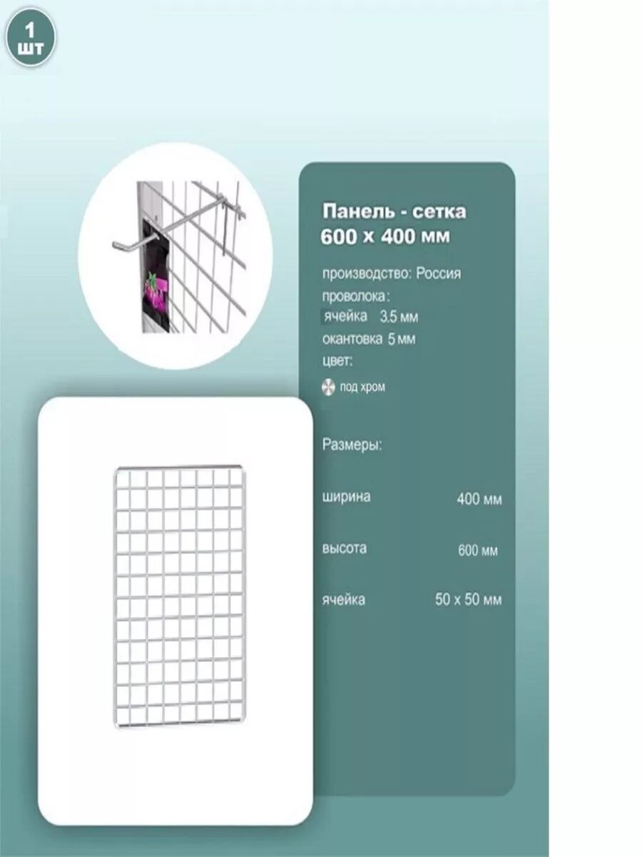 Сетка торговая 400*800мм, ячейка 50*50мм, под хром, 1шт.