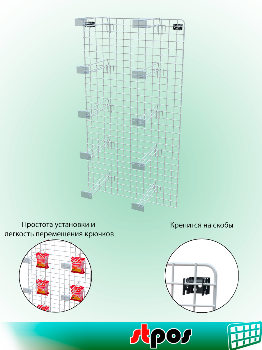 КОМПЛЕКТ Сетка 1200х600, Белый+Крючки двойные 275 мм, d4/d4, шаг 50мм, Белый - 10 шт+Ц/д LH39х70-10шт+Скобы SLN интересное: