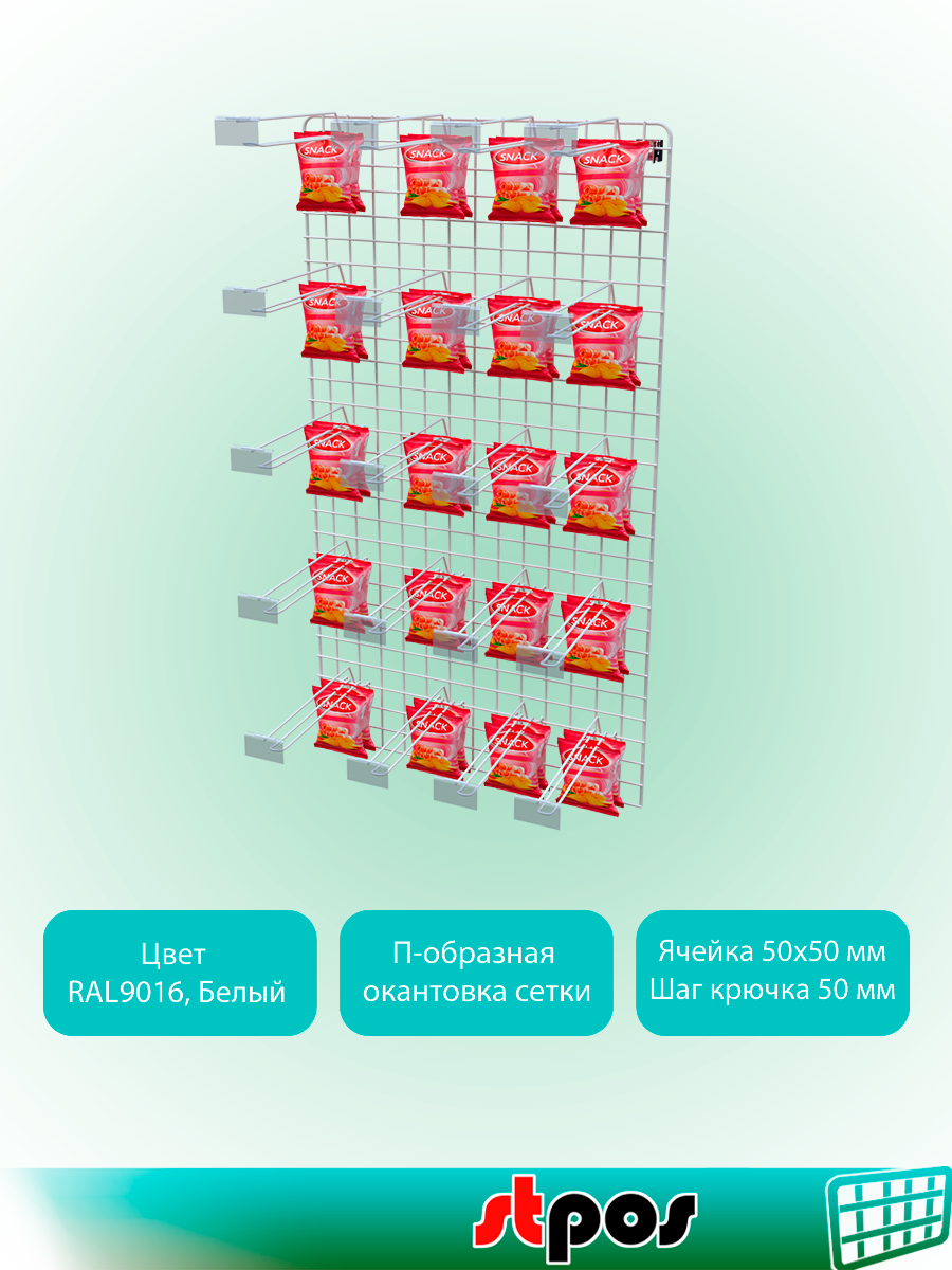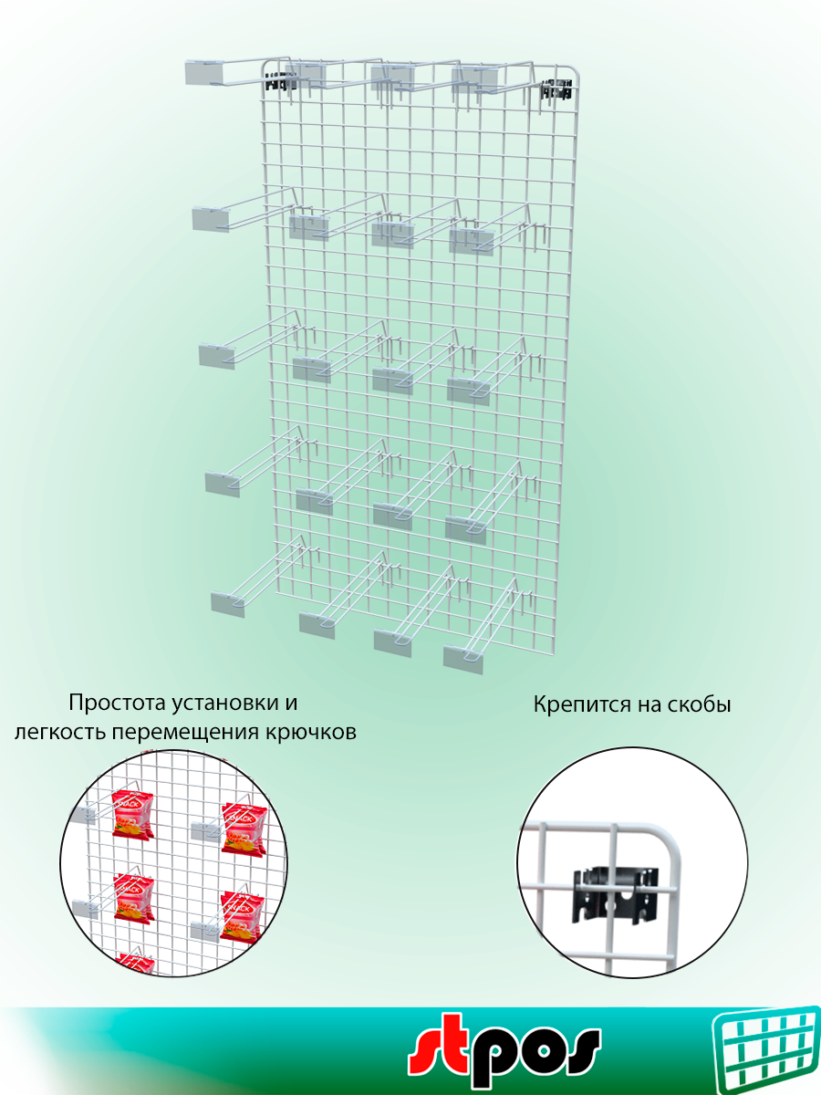 КОМПЛЕКТ Сетка 1200х600, Белый+Крючки двойные 275 мм, d4/d4, шаг 50мм, Белый - 20 шт+Ц/д LH39х70-20шт+Скобы SLN интересное: