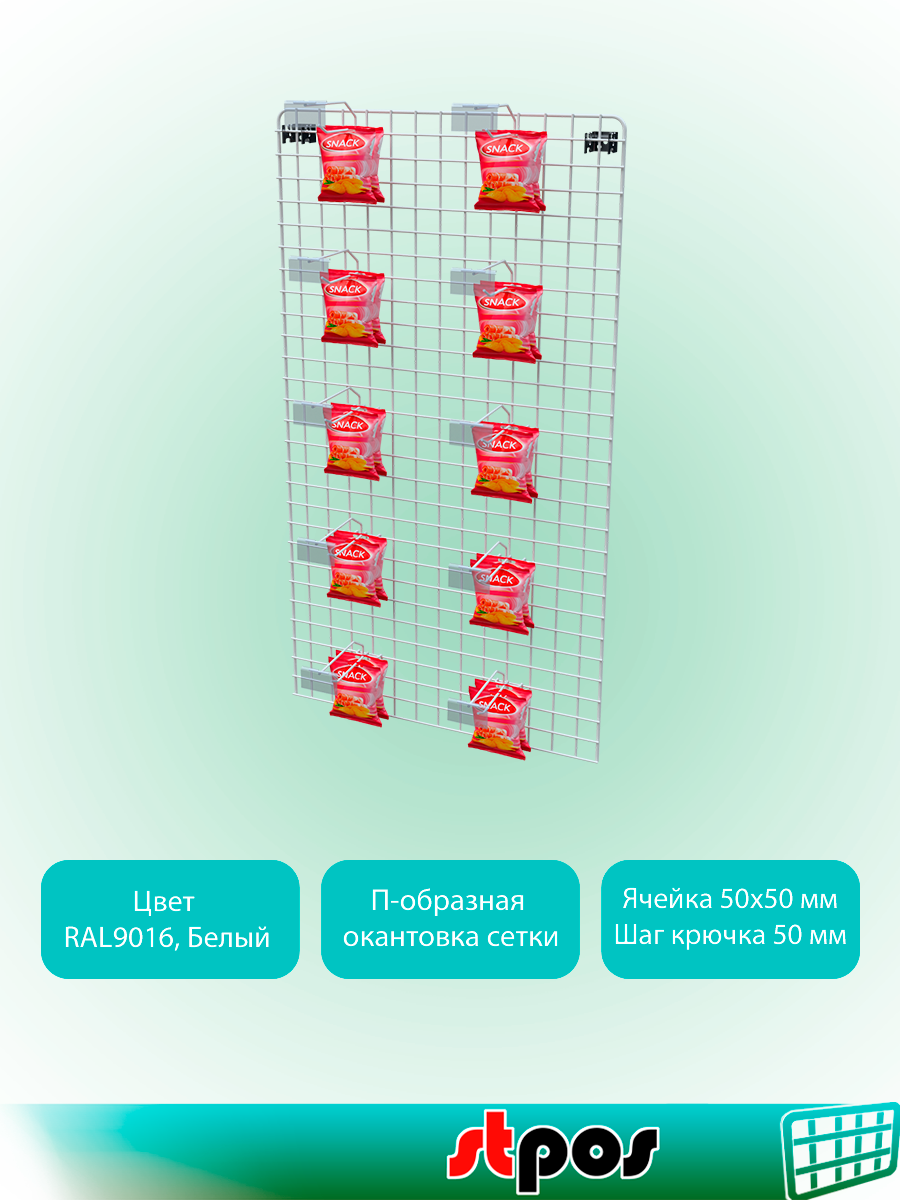 КОМПЛЕКТ Сетка 1200х600, Белый+Крючки одинарные 150 мм, d4/d4, шаг 50мм, Белый - 10 шт+Ц/д LH39х70-10шт+Скобы SLN интересное: