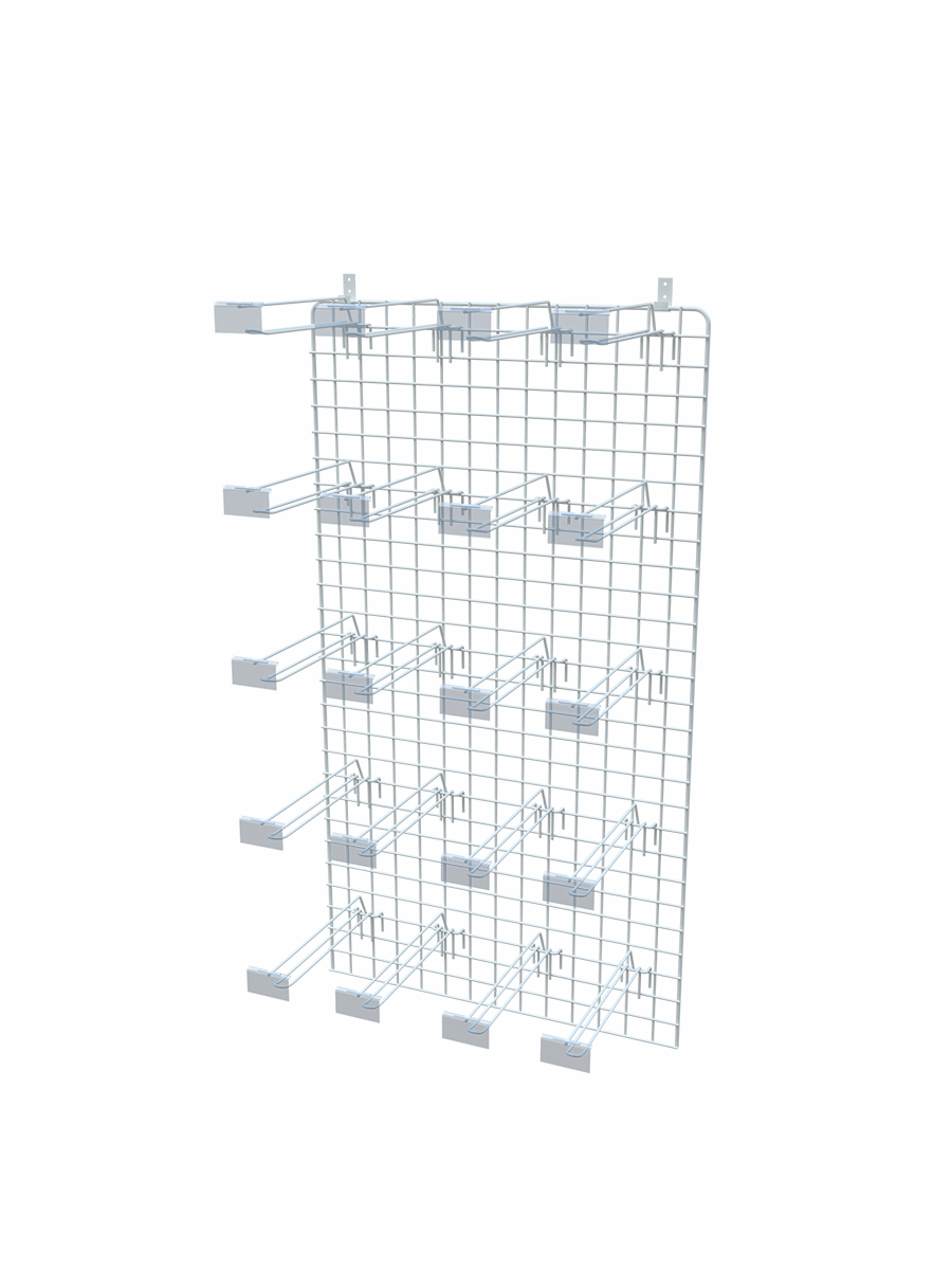 Купить КОМПЛЕКТ Сетка 1200х600, Белый+Крючки двойные 275 мм, d4/d4, шаг 50мм, Белый - 20 шт+Ц/д LH39х70 - 20 шт+Кронштейны
