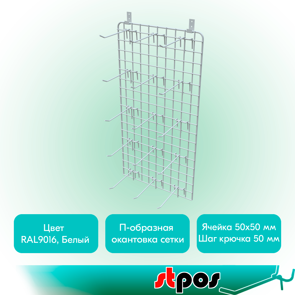 КОМПЛЕКТ Сетка 700х350мм с П-окантовкой, RAL9016 Белый+Крючок 175мм, d4, шаг 50мм, RAL9016 Белый 20 шт+Скобы MS19