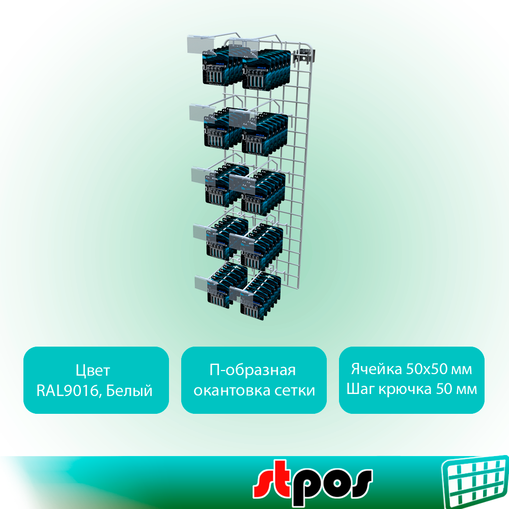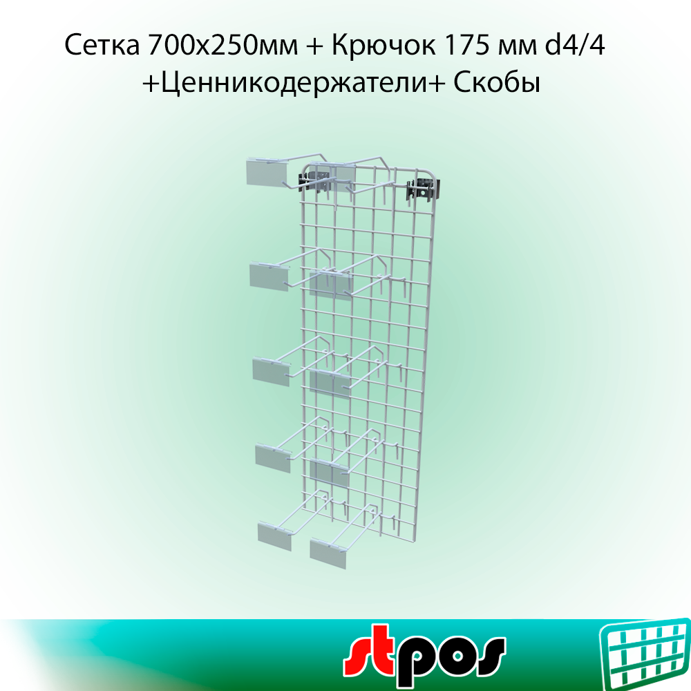 Купить КОМПЛЕКТ Сетка 700х250 с П-окантовкой, Белый+ Крючок с ц/д 175мм, d4/4, шаг 50-10 шт+Скобы