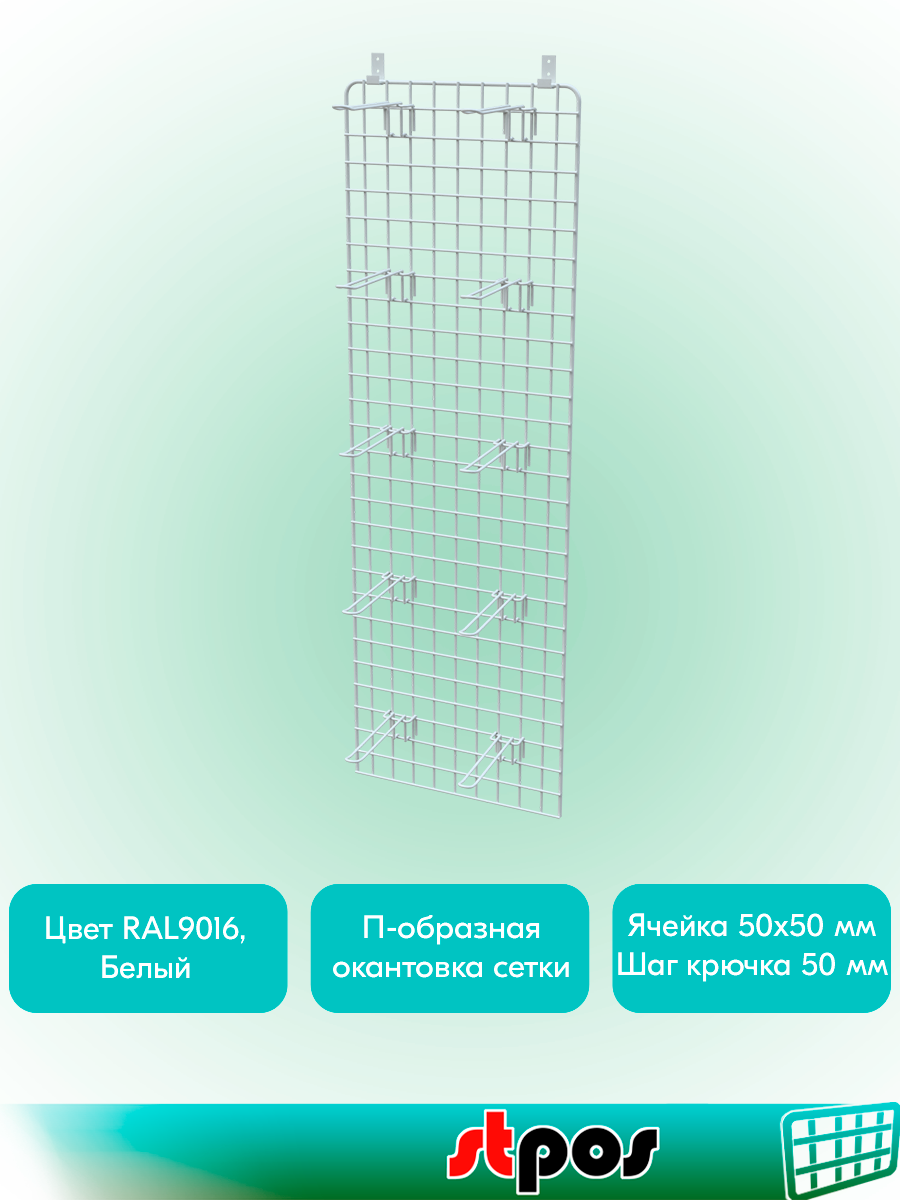 КОМПЛЕКТ Сетка 1200х350мм с П-окантовкой, Белый+Крючки двойные с зацепом 175мм d4, шаг 50мм, Белый 10 шт+Кронштейн интересное: