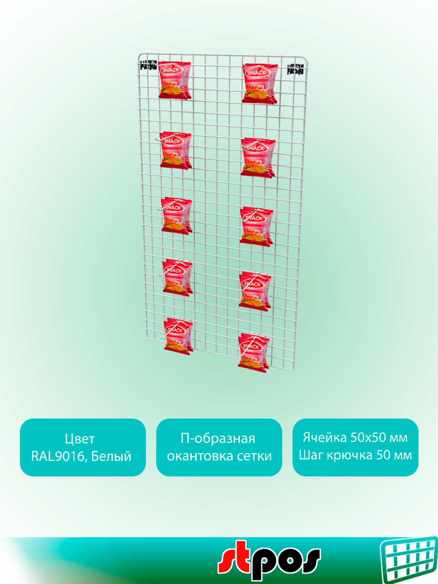 Купить КОМПЛЕКТ Сетка 1200х600, Белый + Крючки на решетку одинарные 200 мм, d4, шаг 50мм, Белый - 10 шт + Скобы SLN